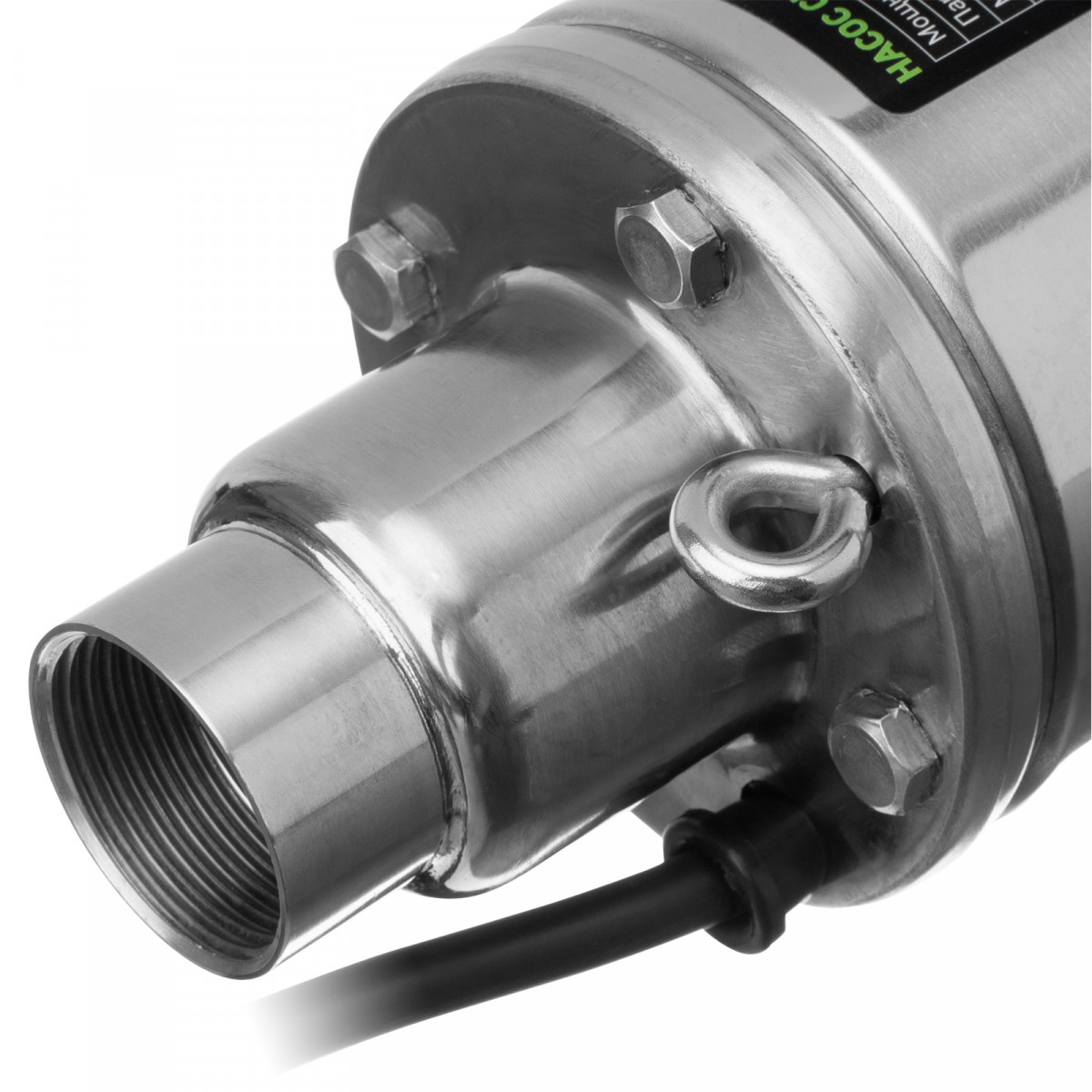 - Легкий монтаж — насос опускается в скважину при помощи троса, закрепленного в проушинах на корпусе.