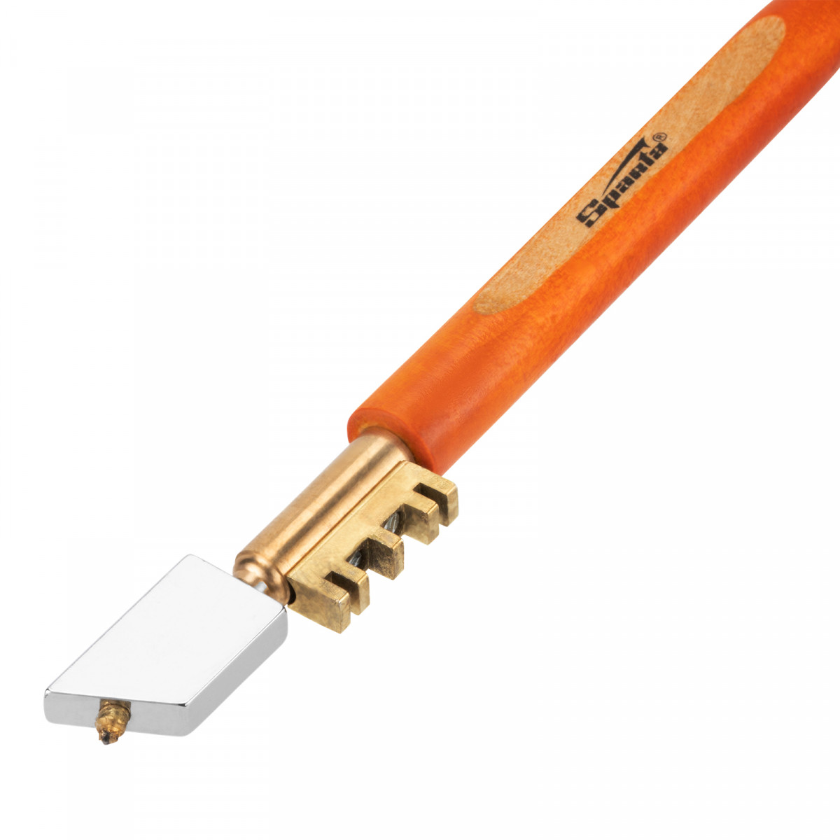 Алмазный стеклорез Sparta 872405 успешно справляется с резкой стекла и зеркал толщиной до 7 мм. Выполнение этой задачи облегчает головка особой формы. Рабочим элементом является искусственный алмаз, рассчитанный на длину реза 3000 м, поэтому инструмент прослужит долго даже при частом использовании. Подходит для профессионального и бытового применения.