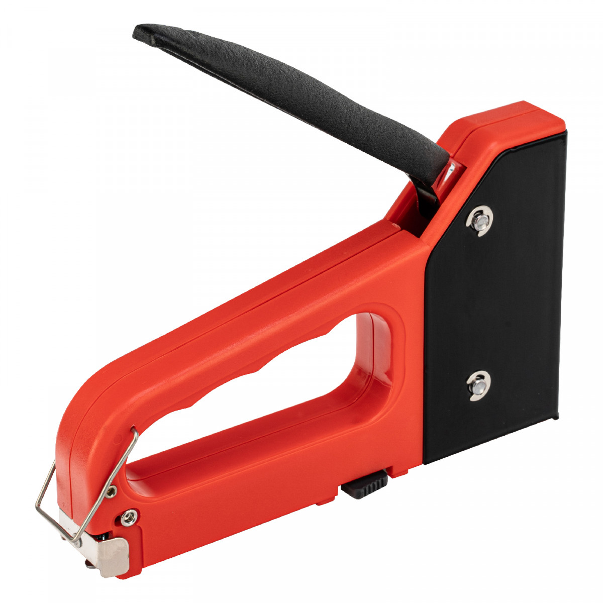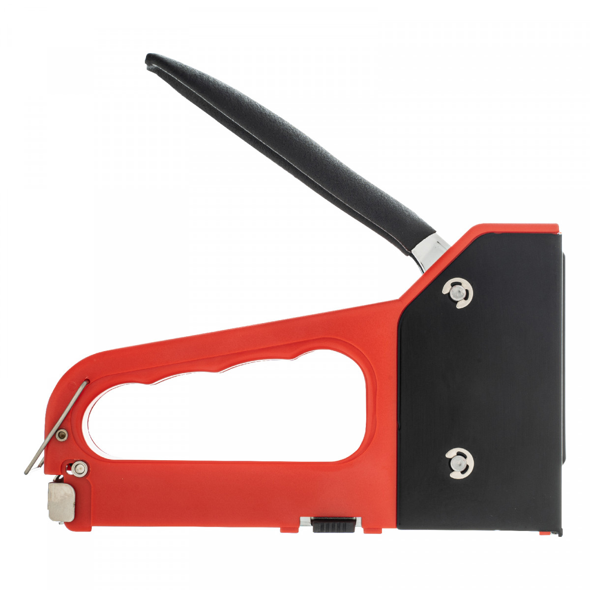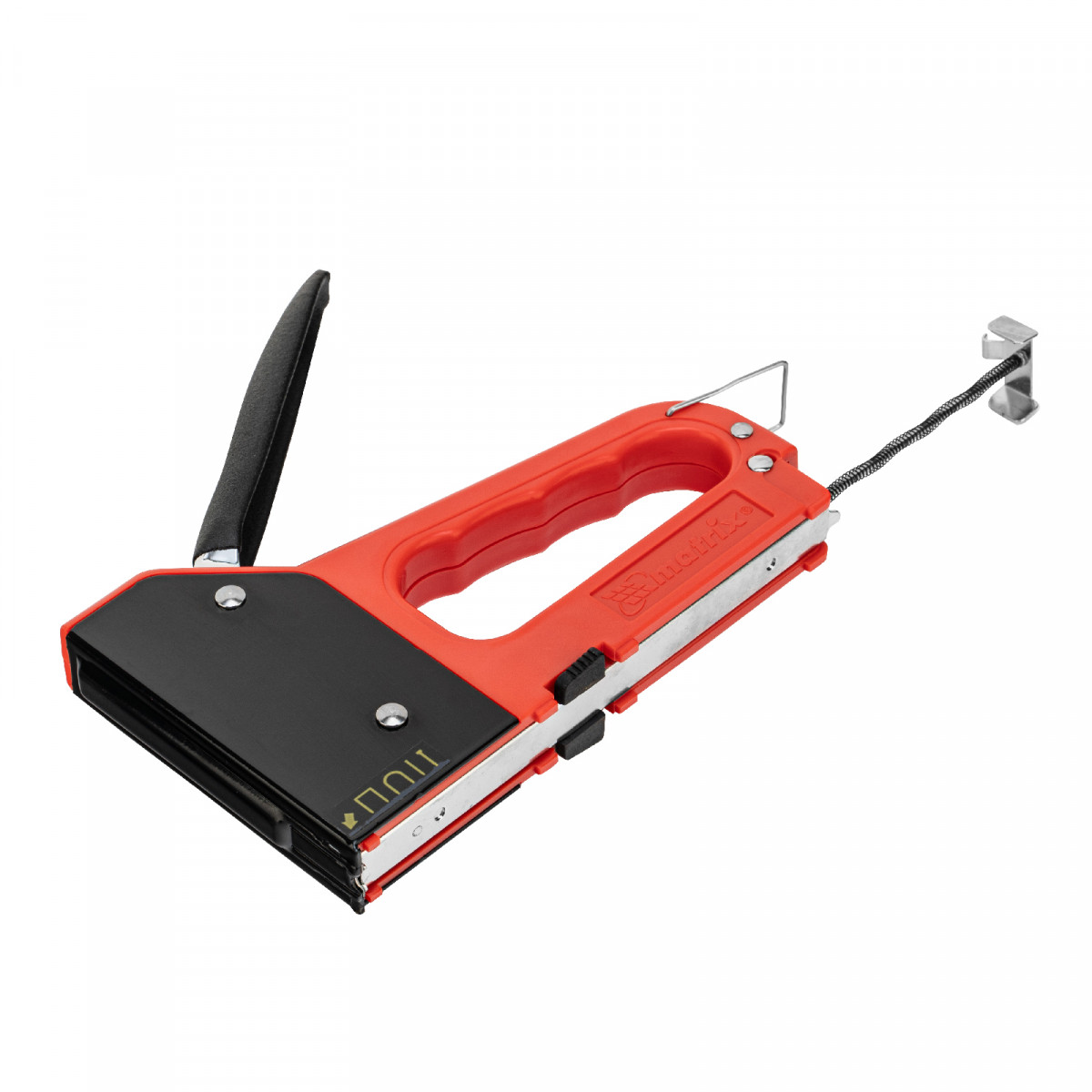 • Безопасное хранение и транспортировка — металлическая скоба фиксирует рукоятку, предотвращая случайное срабатывание степлера.