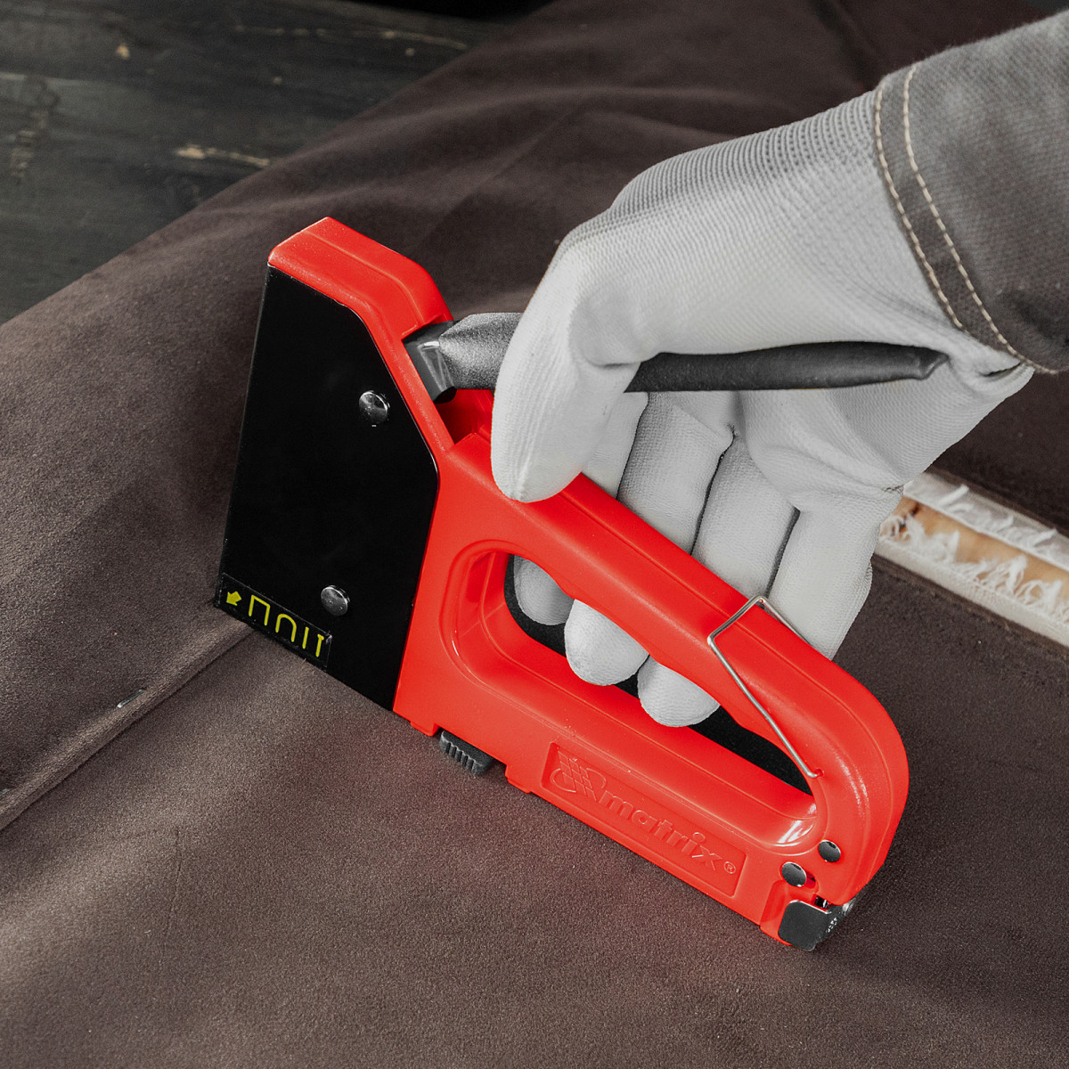 Мебельный 4-функциональный степлер Matrix 40905 используется для крепежных работ и совместим со скобами наиболее востребованных типов — 53 размером 6-14 мм, 300 и 500 размером 14 мм, а также полукруглыми скобами 28 типа размером 12 мм. Благодаря этому инструмент универсален и может использоваться для крепления к деревянным основаниям различных материалов — фанеры, ДСП, ДВП, оргалита, пленки или утеплителя. Пригодится для сборки и обивки мебели, укладки напольных покрытий, прокладки низковольтных кабелей, а также для выполнения отделочных и багетных работ.