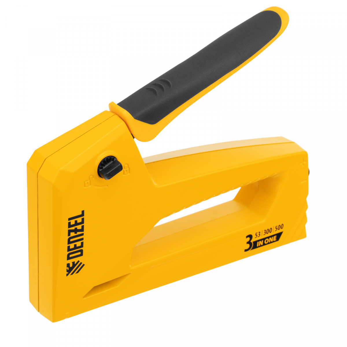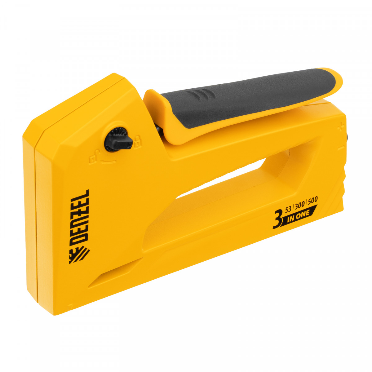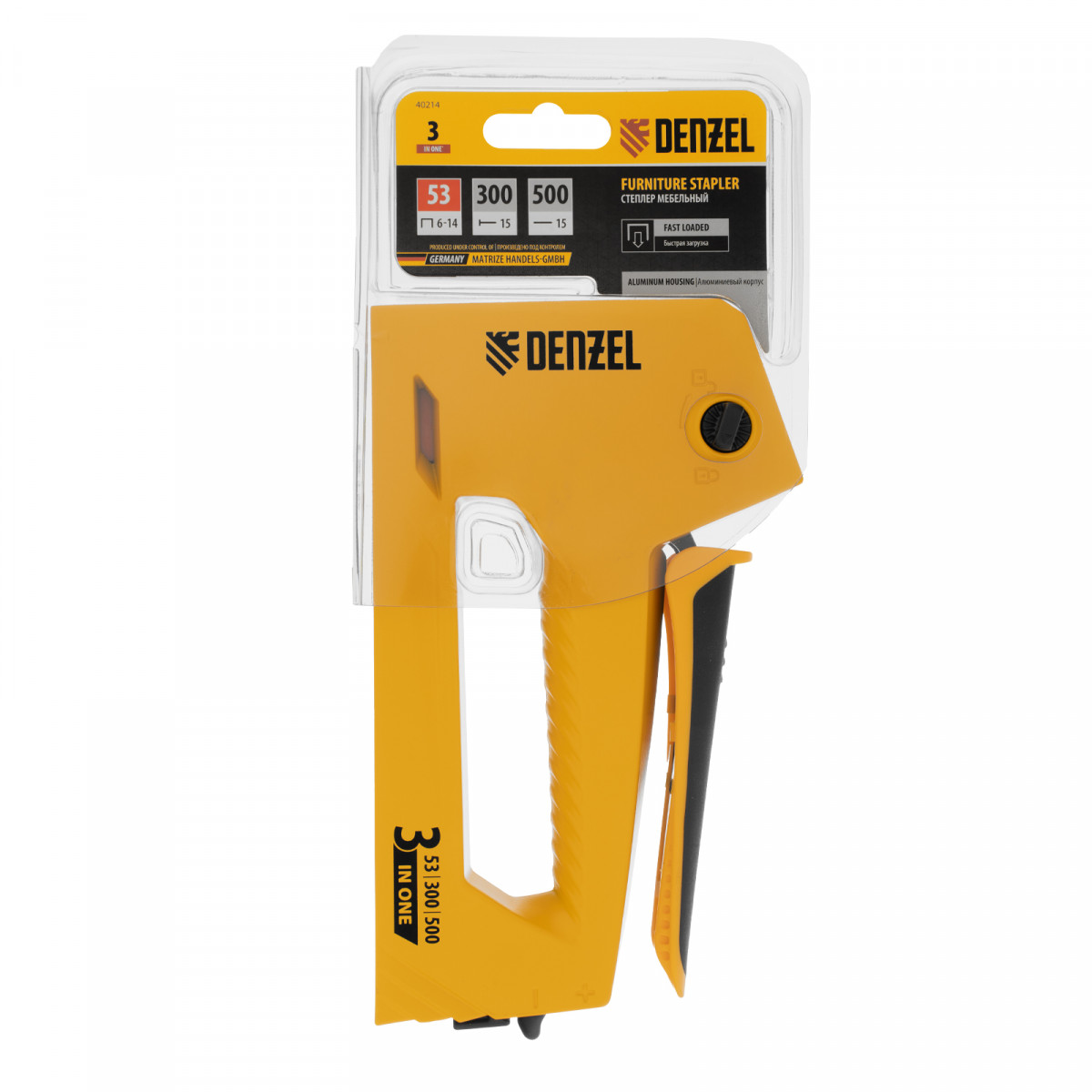 Степлер мебельный, алюминиевый корпус, тип 53, 6-14 мм, тип 300, 15 мм, тип 500, 15 мм Denzel