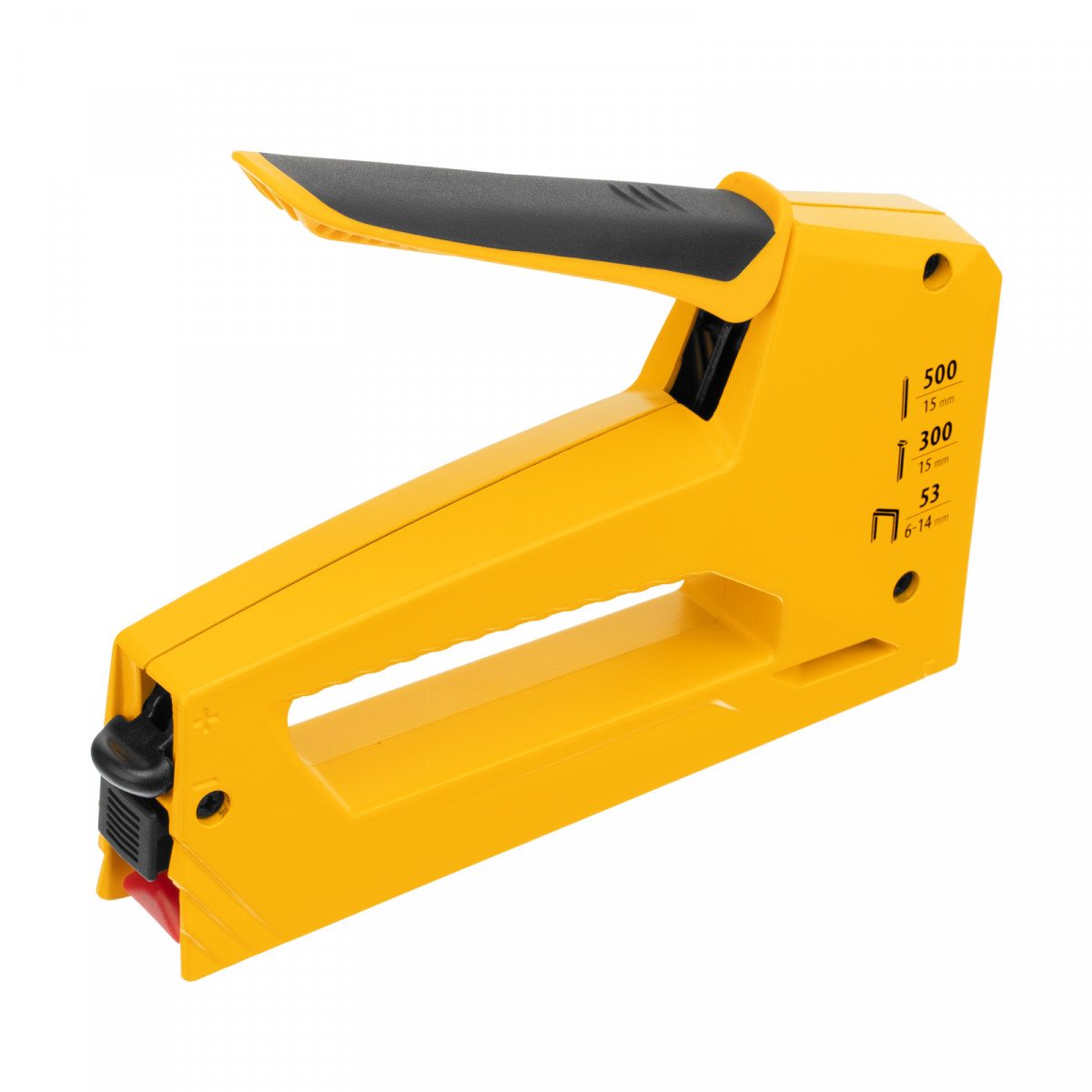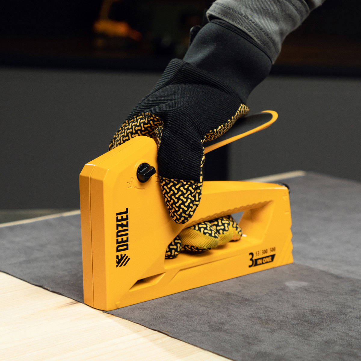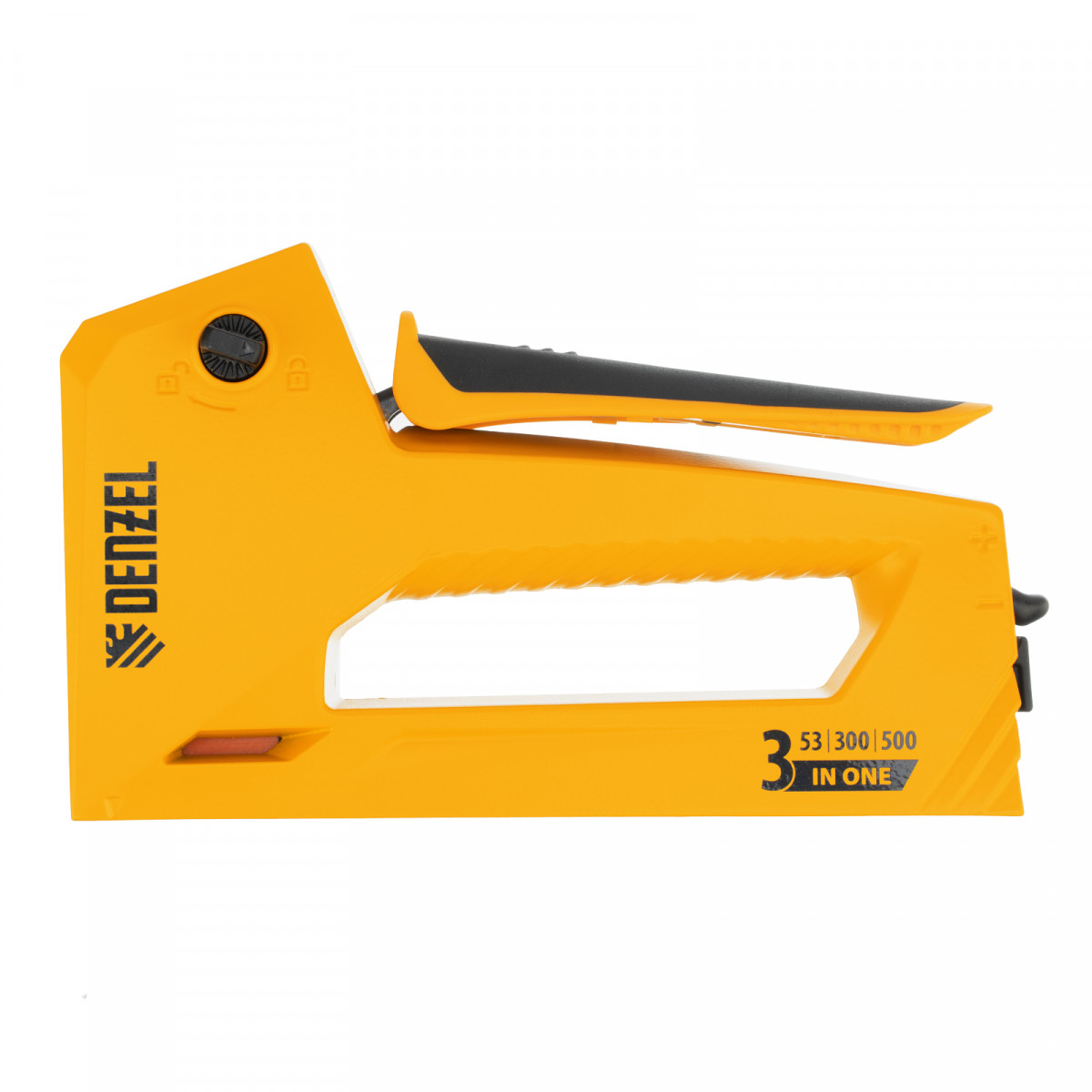 Степлер мебельный, алюминиевый корпус, тип 53, 6-14 мм, тип 300, 15 мм, тип 500, 15 мм Denzel
