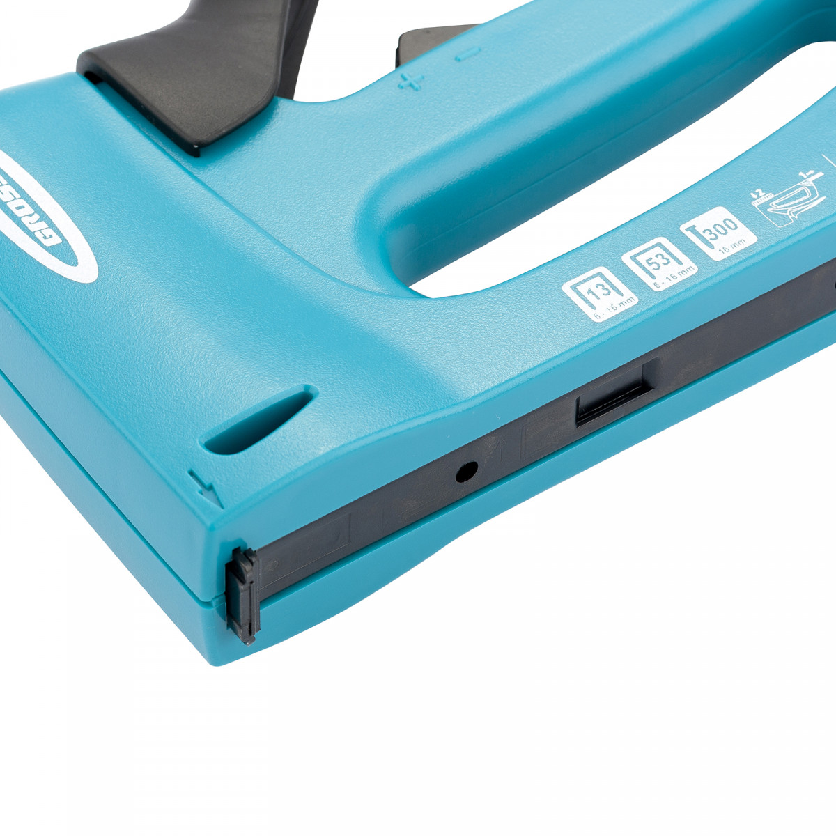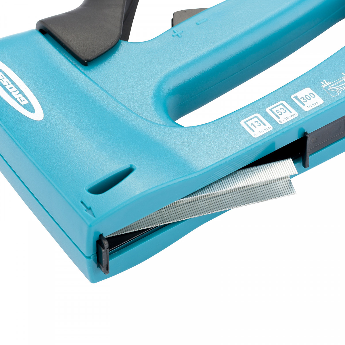 Степлер мебельный, пластиковый корпус, регулировка удара, тип скобы: 13, 53, 300, 6-16 мм Gross