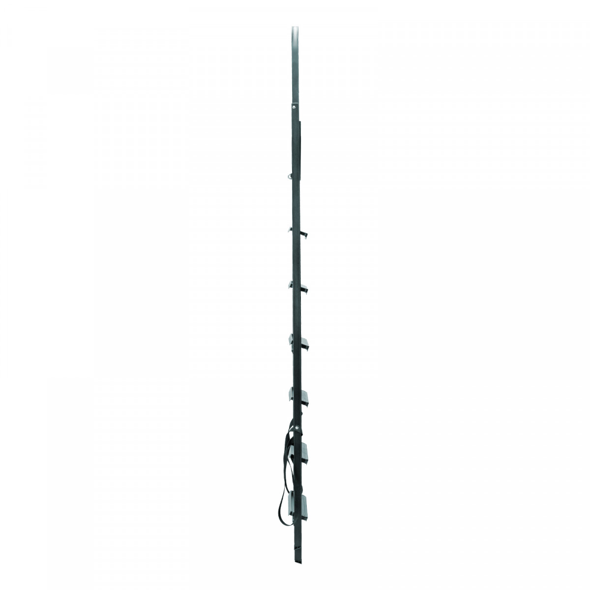 - Надежная фиксация в рабочем положении — на верхней площадке имеются специальные зацепы, опоры дополнительно удерживаются страховочными лентами.