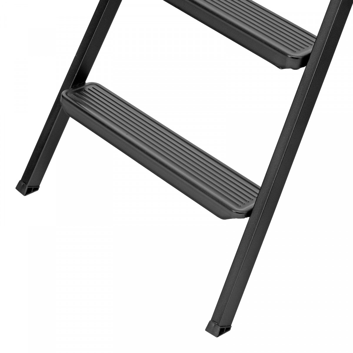 Стремянка имеет антрацитовое покрытие порошковой эмалью, защищающее от коррозии.