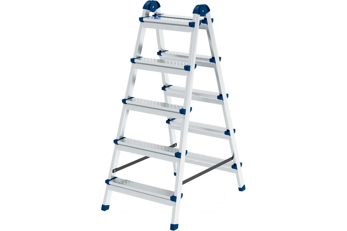 Стремянка двухсторонняя 5 ст., сталь профиль, стальные ступени, Россия// Сибртех