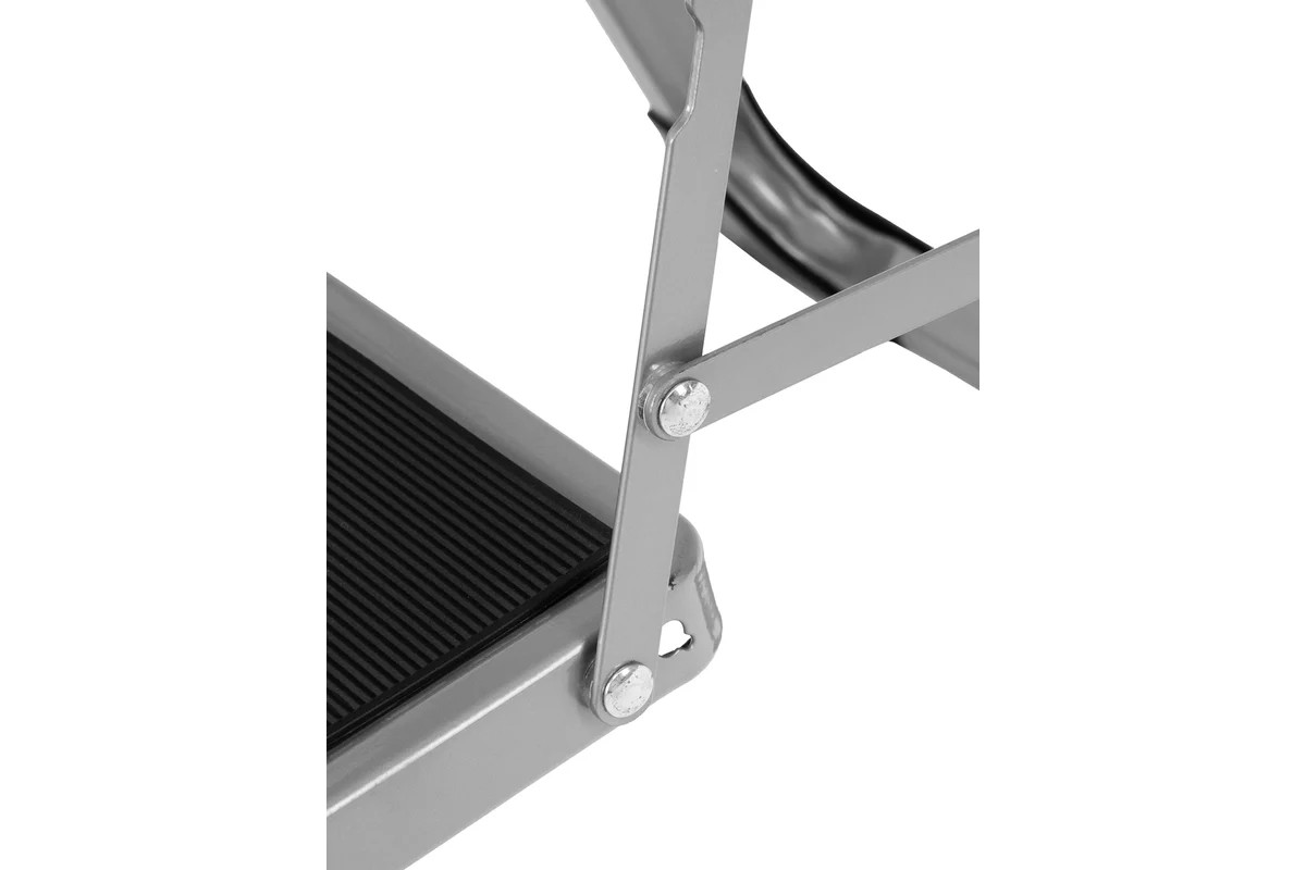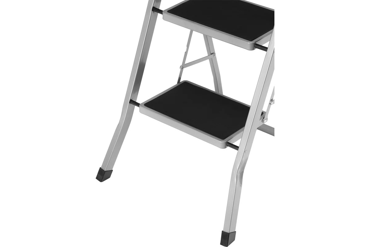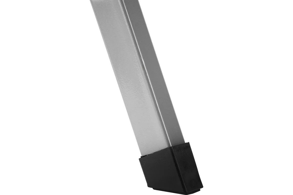 • Прочная конструкция — стремянка изготовлена из стального профиля и снабжена надежным механизмом раскладывания, поэтому выдерживает нагрузку до 150 кг