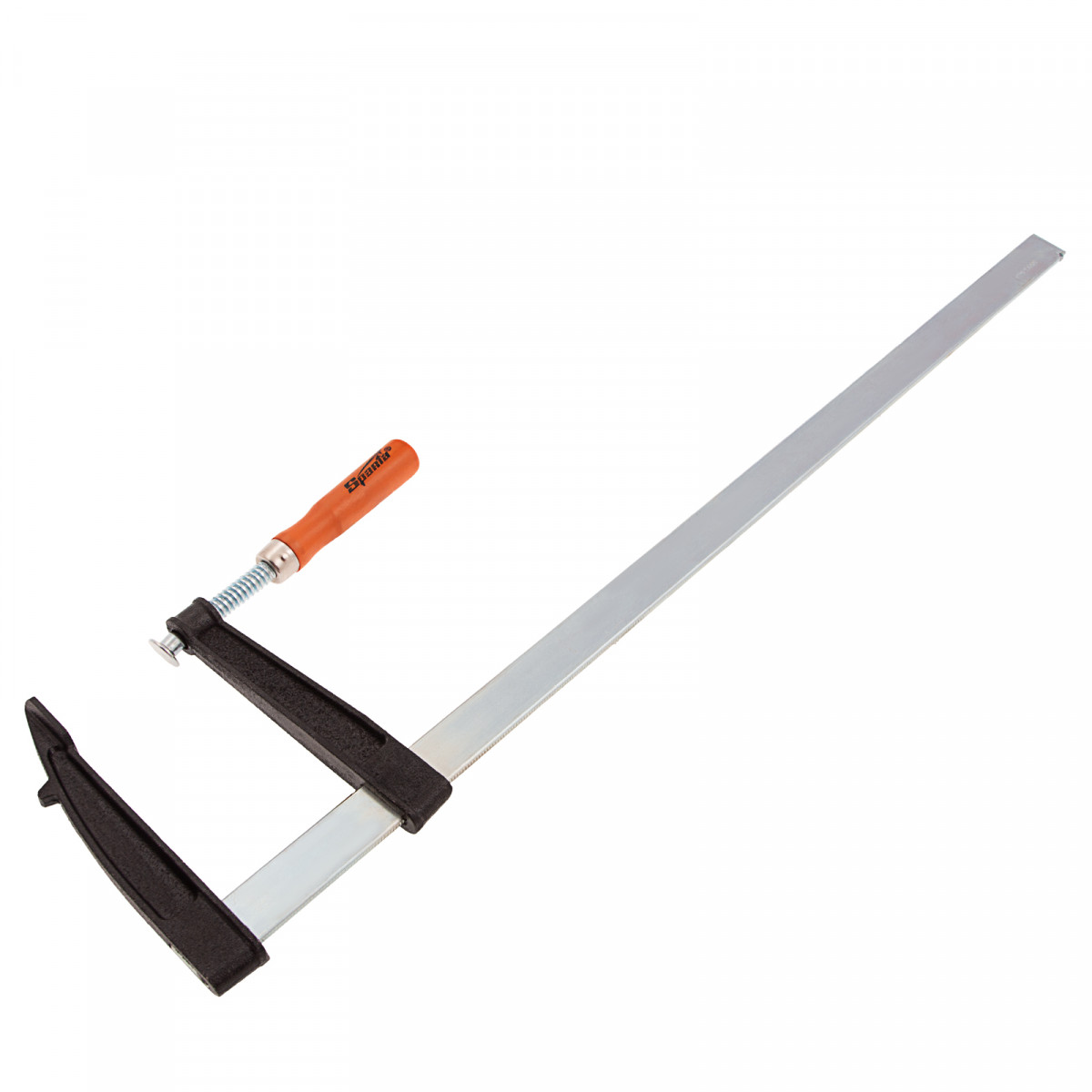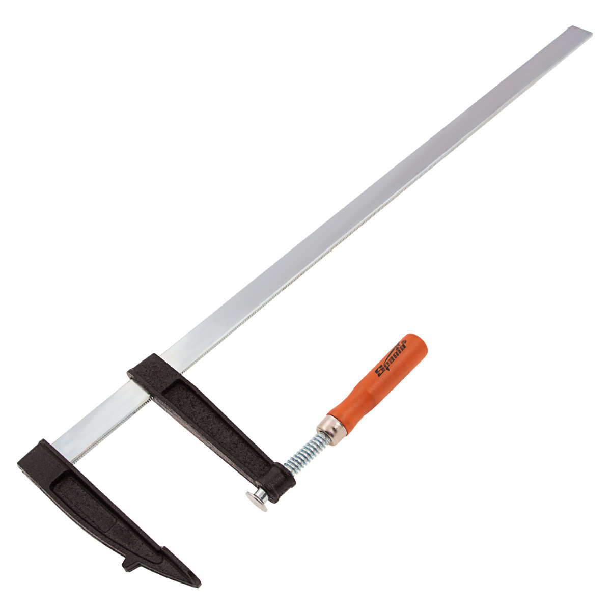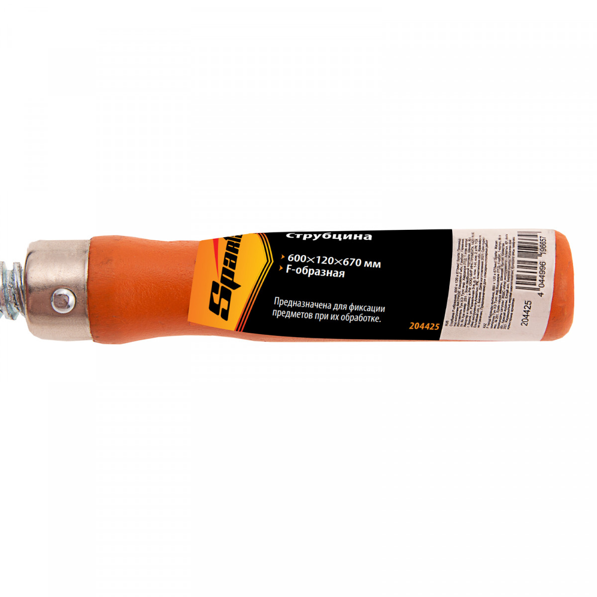 F-образная струбцина Sparta 204425, 600 х 120 х 670мм, используется в столярном и слесарном деле и позволяет фиксировать заготовки из металла, древесины и других материалов для их соединения или обработки. Деталь помещают между губками, одна из которых подвижна и служит для регулировки величины захвата. Винтовой зажим позволяет прикладывать значительное усилие для надежной фиксации. Защитные накладки предотвращают повреждение детали. Элементы конструкции выдерживают высокую температуру, поэтому струбцина подходит для проведения сварочных работ, при этом пластиковые накладки необходимо снять.