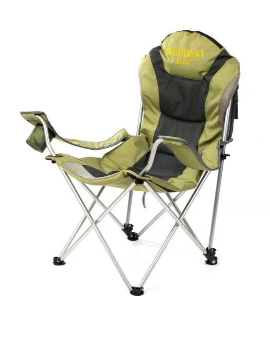 Кресло туристическое "PRESIDENT FISH" очень комфортное и удобное, отлично подходит для использования на рыбалке, охоте, пикнике, в туристическом лагере, и также прекрасно подходит в качестве дачной мебели. Кресло имеет мягкие объемные подлoкoтники, c подставкой для стакана, а чехол от стула убирается под молнию сверху спинки стула и образует мягкий подголовник, что создает дополнительное удобство. Для более комфортного отдыха, кресло имеет возможность регулирования угла наклона спинки З (три позиции).В сложенном виде, кресло имеет компактные габариты, поэтому с легкостью помещается в багажник любого легкового автомобиля.Рамеры в сложенном виде: 104/25 см.