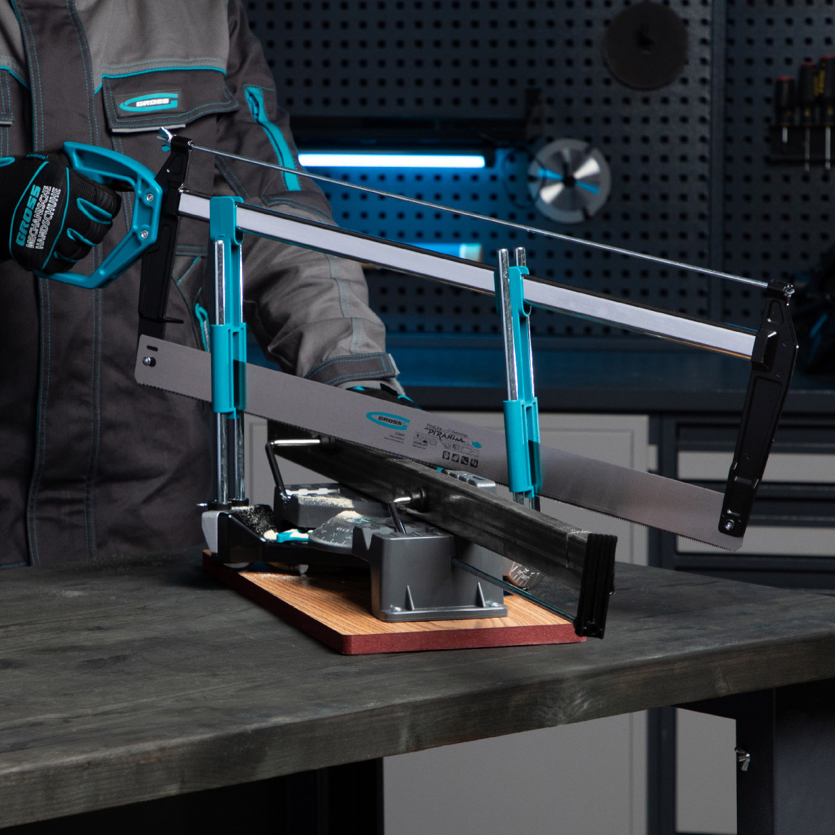 Стусло прецизионное, двухплоскостное, пила 600 мм, две прижимные струбцины, ограничительный упор Gross