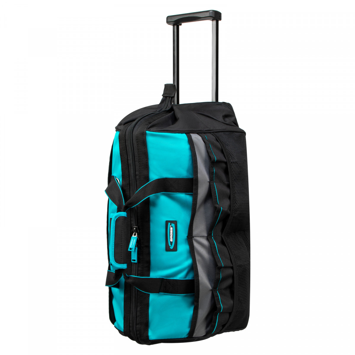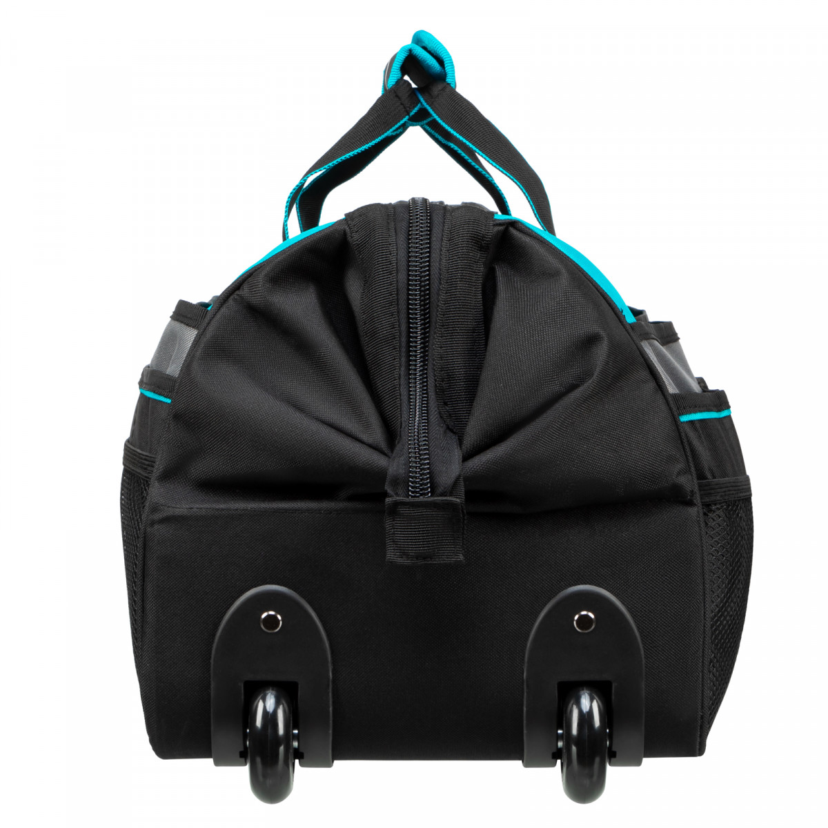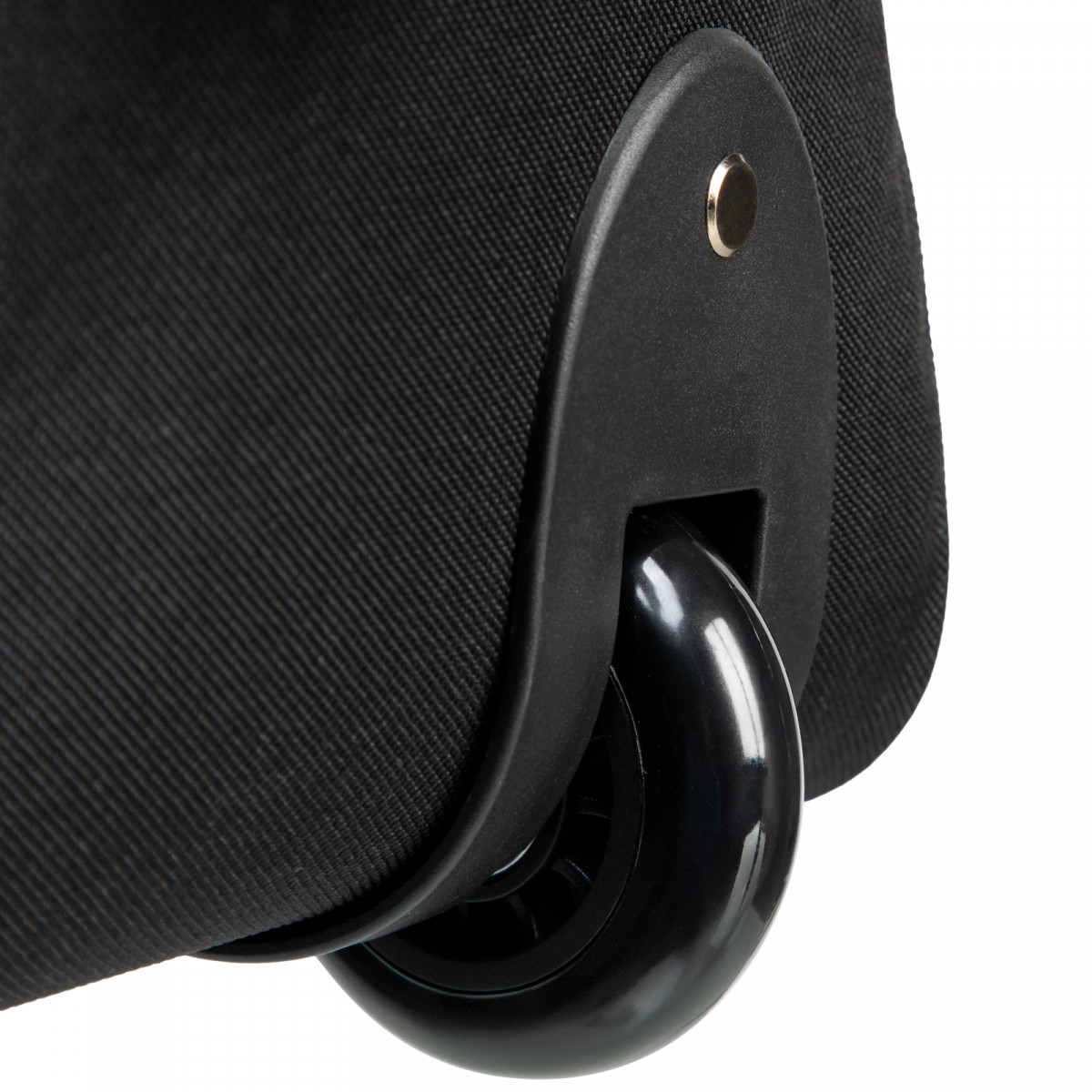 - Комфортное перемещение — сумка снабжена выдвижной телескопической ручкой и колесами, а также регулируемым наплечным ремнем с широкой накладкой.
