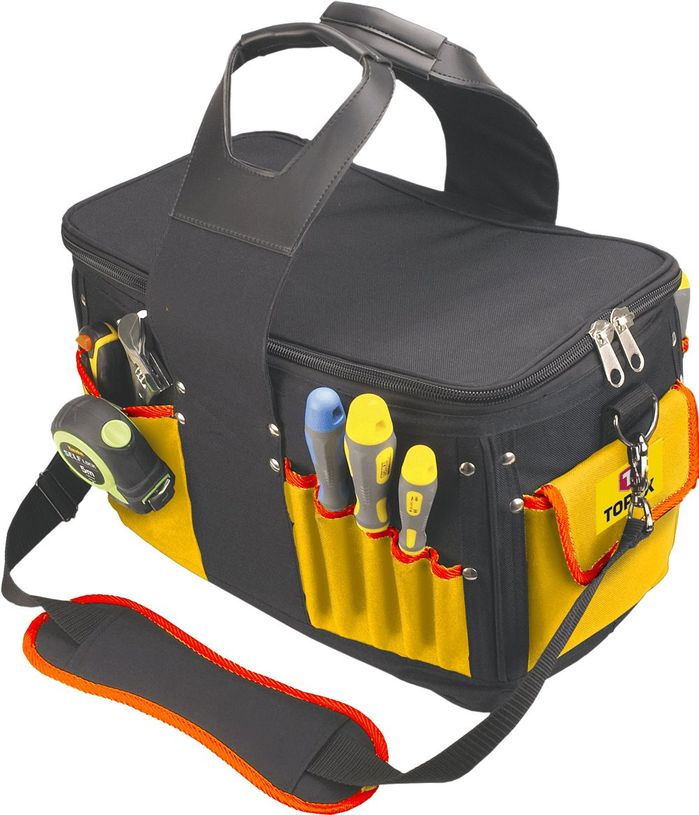 Сумка для инструмента - надежный помощник, применяется для перемещения и хранения инструментов. Сумка изготовлена из прочного материала, обеспечивая долгую и практичную службу. Она оснащена 16 внешними карманами и 12 внутренними карманами. Ручки и ремень гарантируют комфортную транспортировку. Упрочненное дно позволяет использовать сумку для переноски тяжелых предметов. Сумка закрывается на застежку-молнию.