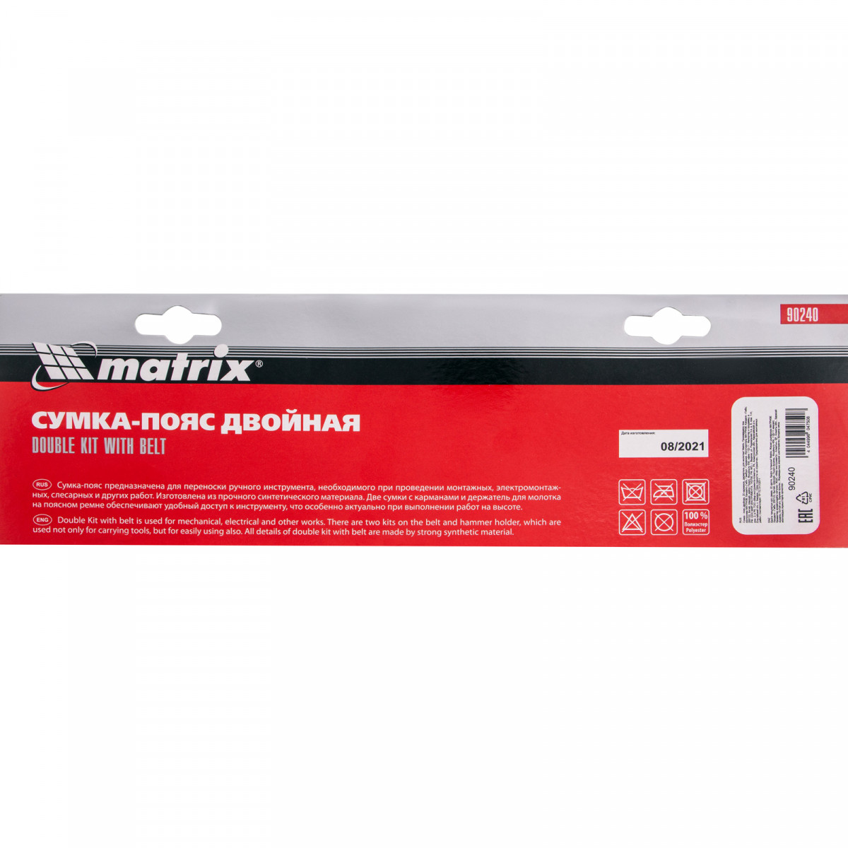 Двойная сумка-пояс Matrix 90240 с 20 карманами и держателем для молотка позволяет всегда иметь при себе необходимые инструменты, при этом оставляя руки свободными. Особенно удобна при проведении работ на стремянках или подмостях. На пояс надеты 2 сумки, между которыми имеется отдельный держатель для молотка, поэтому инструменты можно распределить равномерно. Сумка-пояс пригодится строителям и монтажникам, а также будет полезна в быту.