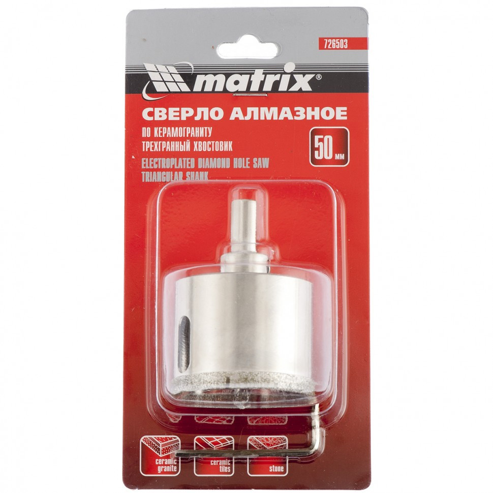 Сверло алмазное по керамограниту, 50 х 67 мм, трехгранный хвостовик Matrix