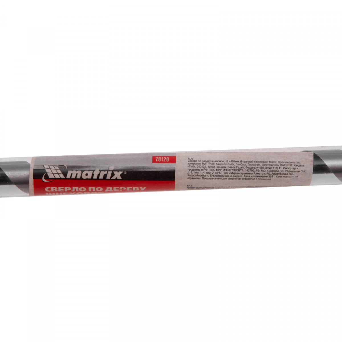 Сверло по дереву шнековое, 12 х 460 мм, шестигранный хвостовик Matrix