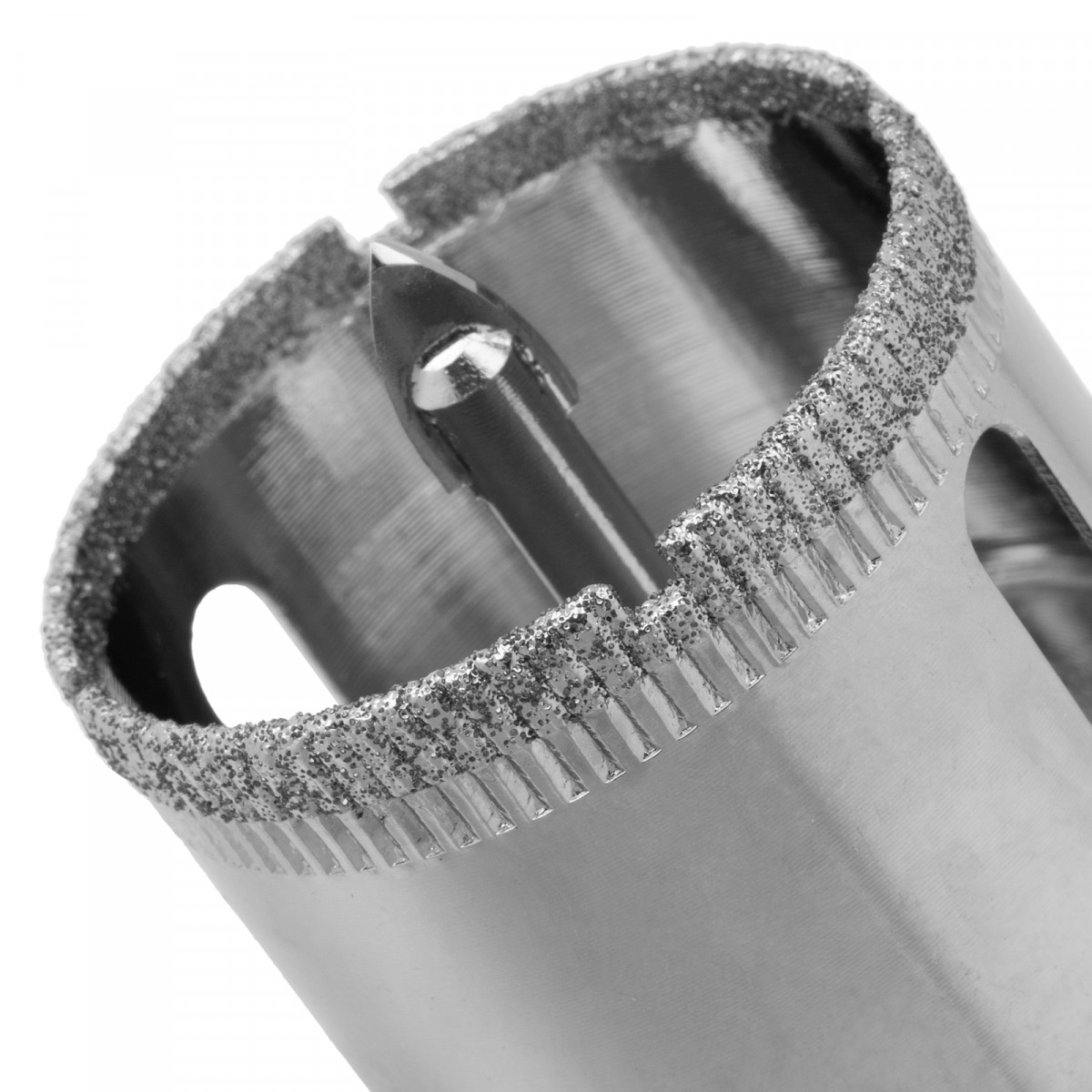 • Точное позиционирование — центрирующее сверло быстро заглубляется в материал, не давая коронке сдвигаться во время сверления.