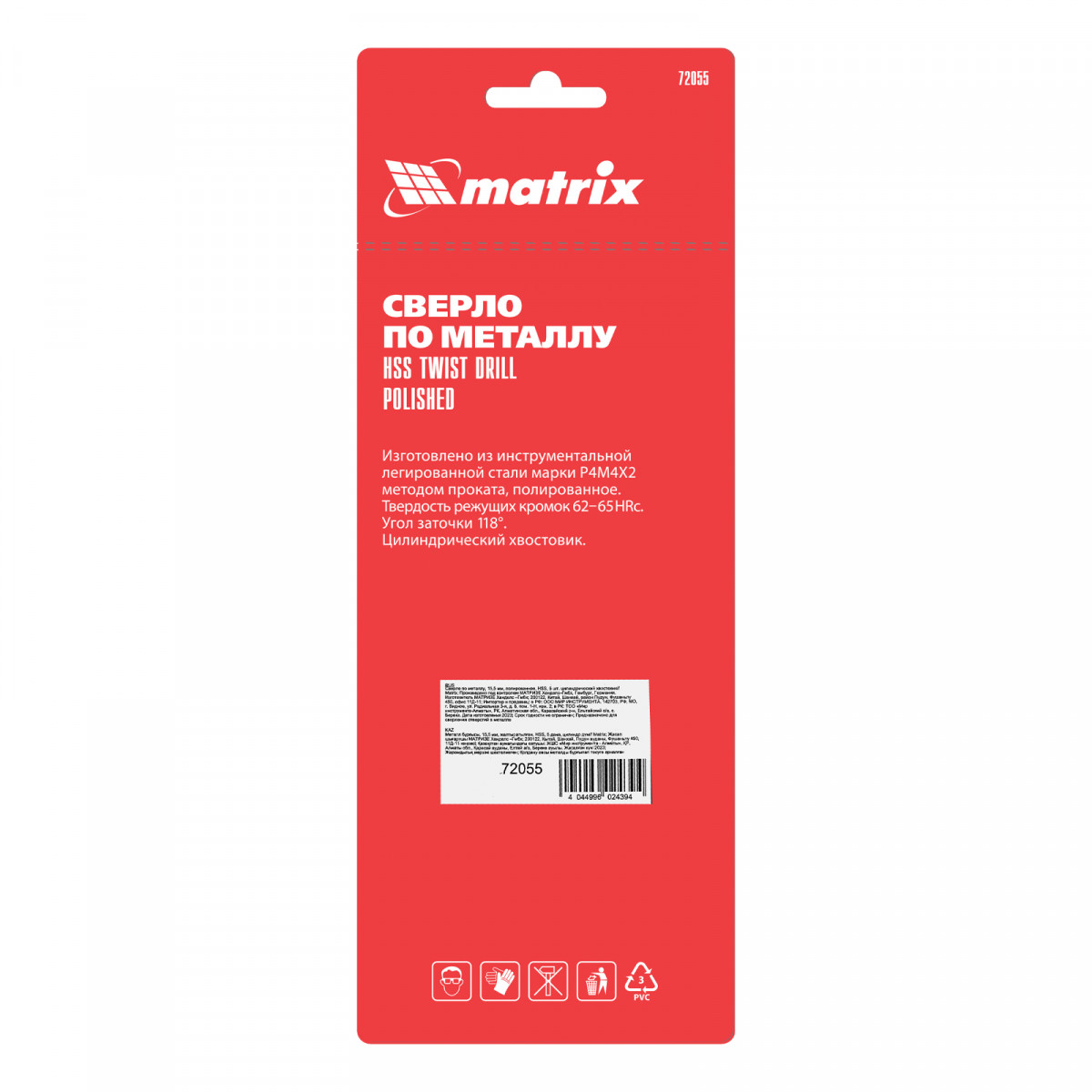 Полированное сверло по металлу Matrix 72055 из стали HSS, с цилиндрическим хвостовиком, 5 шт. в упаковке, используется для получения отверстий диаметром 15,5 мм. Угол заточки составляет 118°, поэтому сверло оптимально для работы с черными металлами, сталью, чугуном и твердой бронзой.