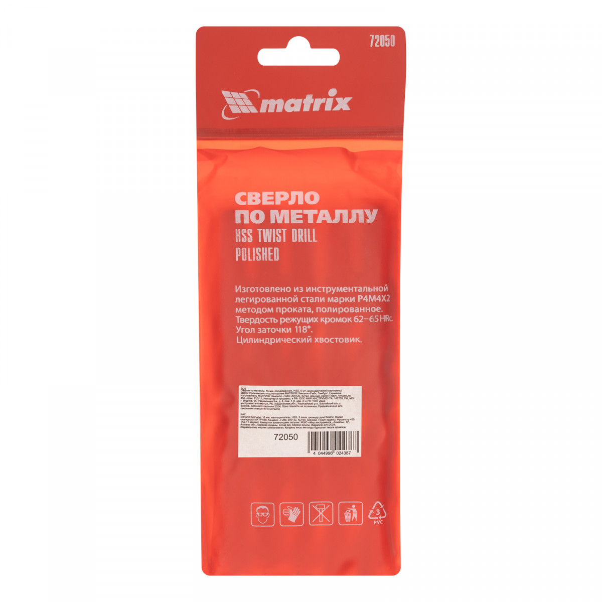Сверло по металлу, 15 мм, полированное, HSS, 5 шт, цилиндрический хвостовик Matrix