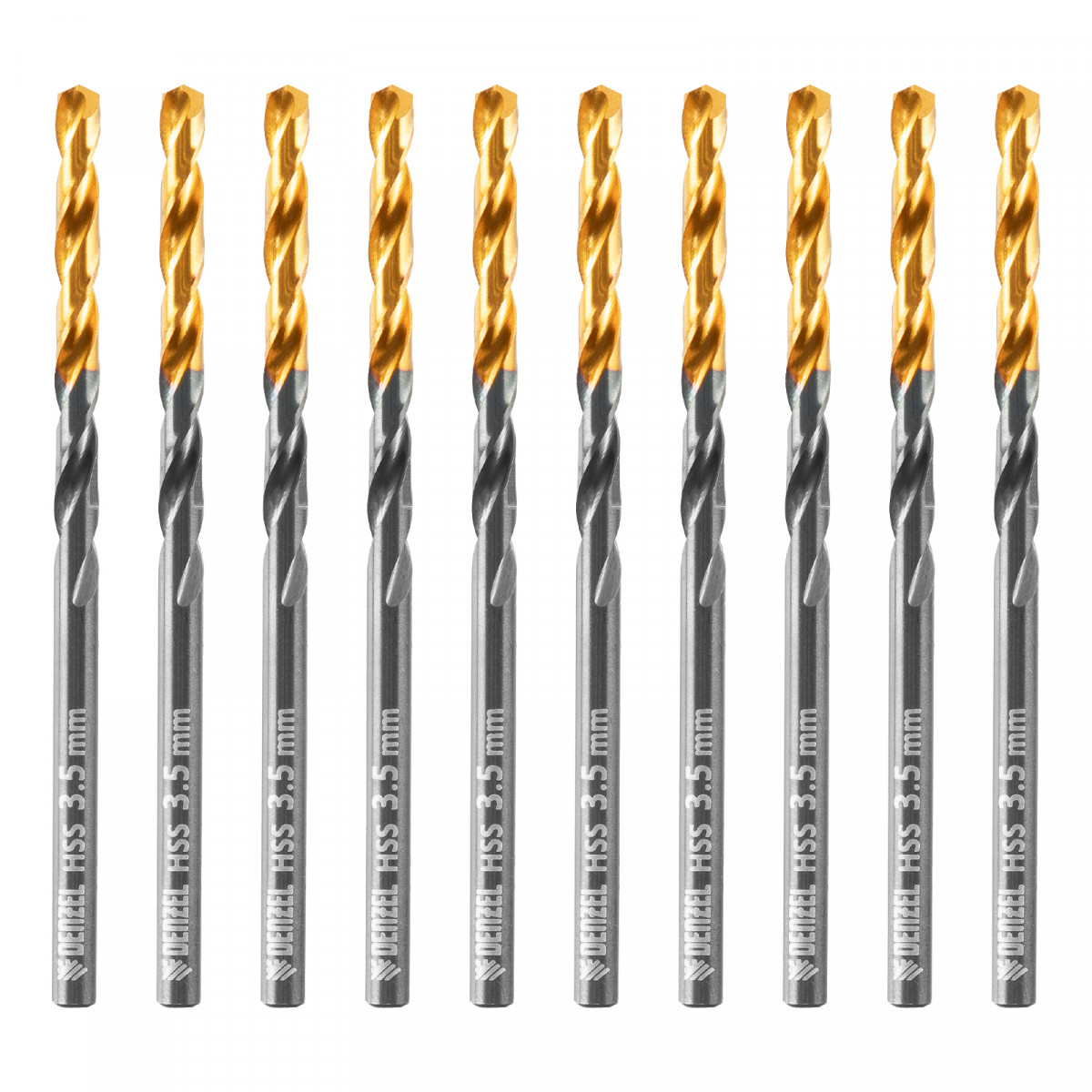 Сверло по металлу, 3,5 мм, HSS-Tin, Golden Tip, 10 шт. Denzel