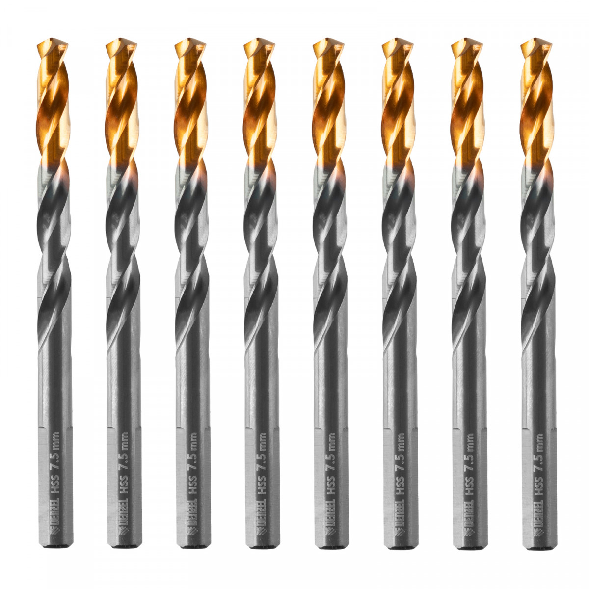 Сверло по металлу, 7,5 мм, HSS-Tin, Golden Tip, 8 шт. Denzel