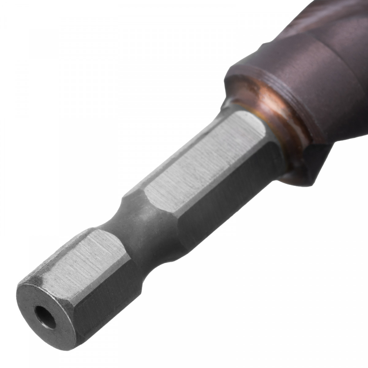 Сверло ступенчатое 4-5-6-7-8-9-10-11-12 мм, Р6М5К5, 6-гр. хвостовик Denzel