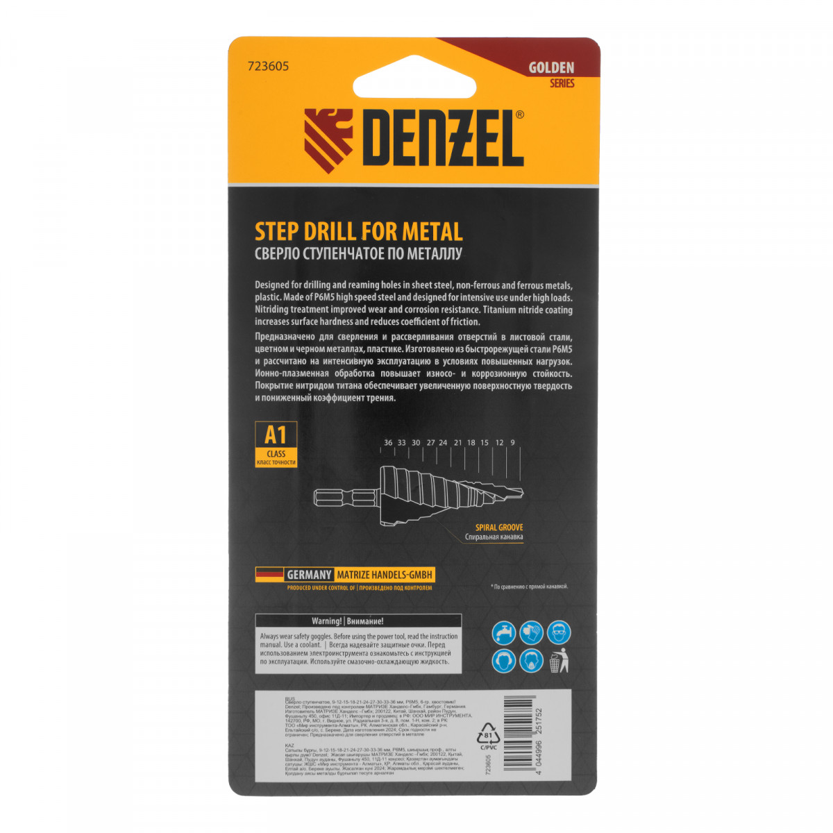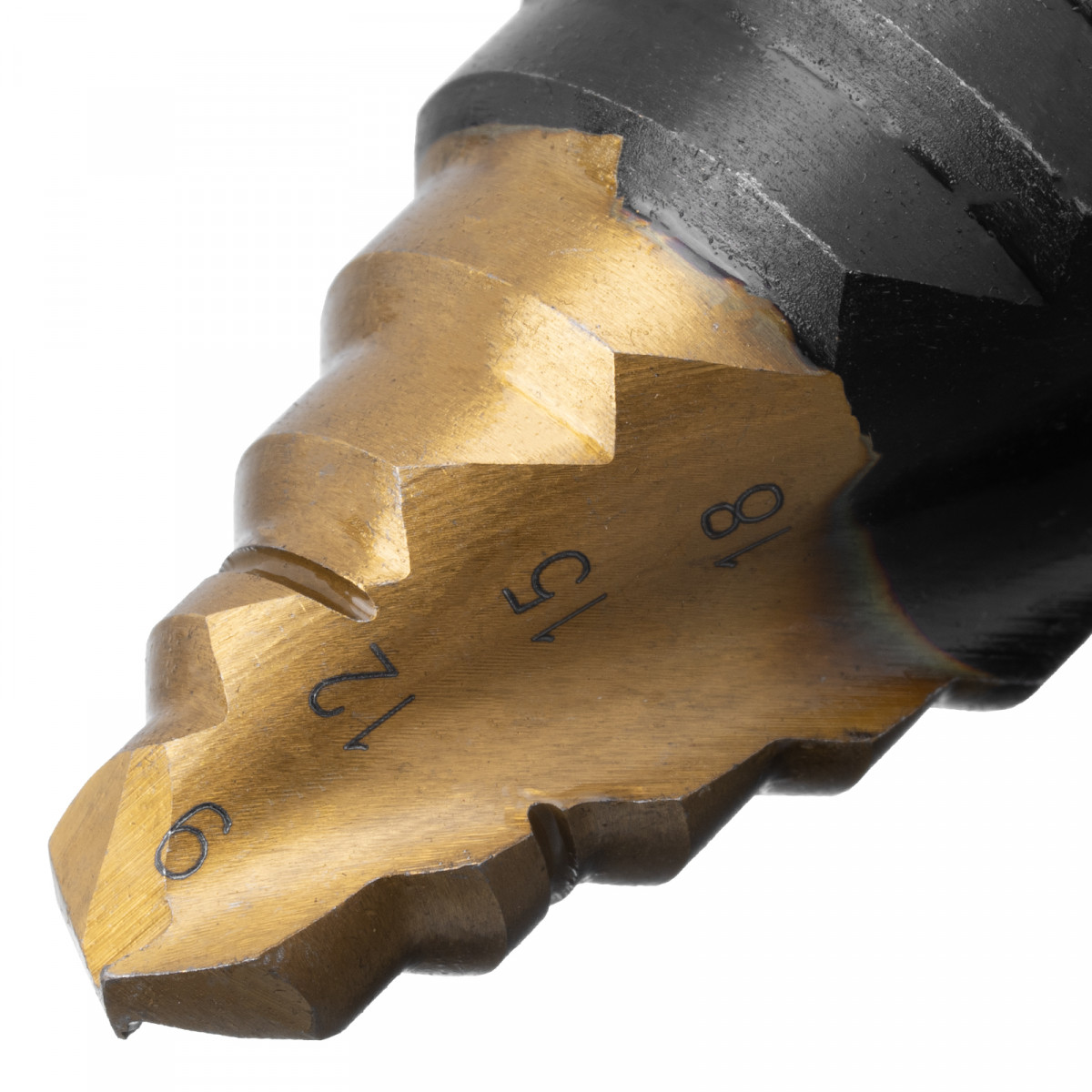 Сверло ступенчатое, 9-12-15-18-21-24-27-30-33-36 мм, Р6М5, 6-гр. хвостовик Denzel