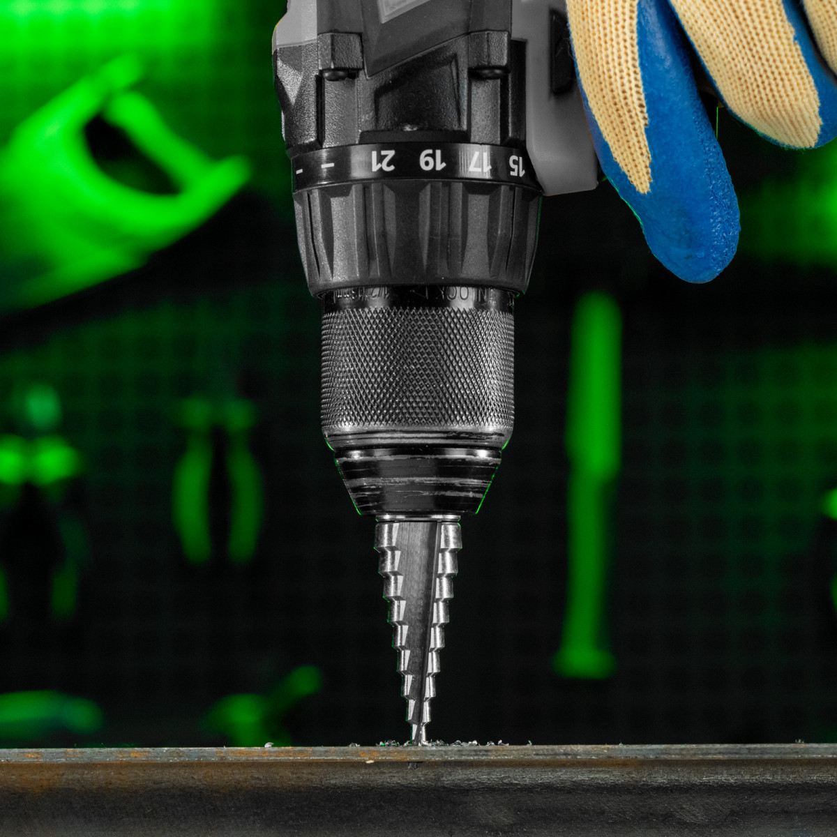 Ступенчатое сверло Сибртех 723012 предназначено для сверления отверстий диаметром от 4 до 20 мм в сталях, цветных металлах и пластике. Избавляет от необходимости иметь при себе целый набор традиционных сверл. Позволяет получать отверстия с ровными краями и уже снятой фаской под гайку или болт. Сверло пригодится дома и в мастерской.