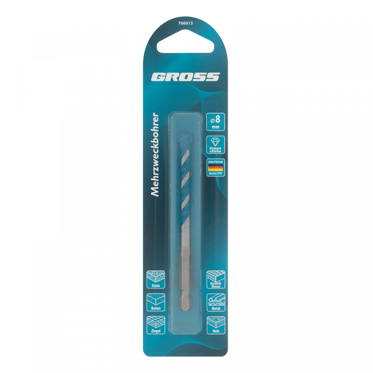 Сверло универсальное, Multipurpose PRO, 6-гр. хвостовик, 8мм Gross