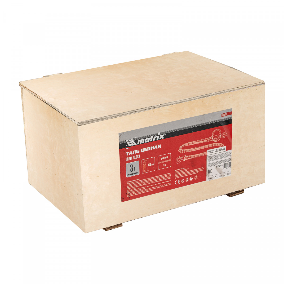 Таль цепная, 3 т, H подъема 3 м, расстояние между крюками 470 мм Matrix