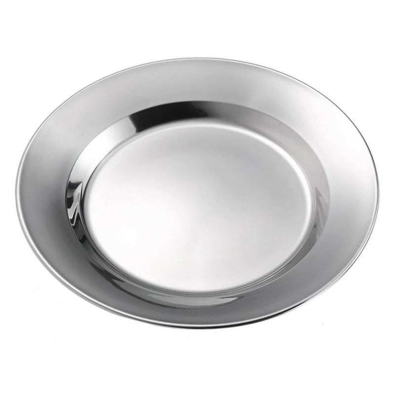 Тарелка из нержавеющей стали – незаменимая и универсальная посуда, которая незаменима для походов и пикников. При взаимодействии с пищевыми продуктами нержавеющая сталь не образует соединений, вредных для организма человека. Прочная, легкая и компактная.