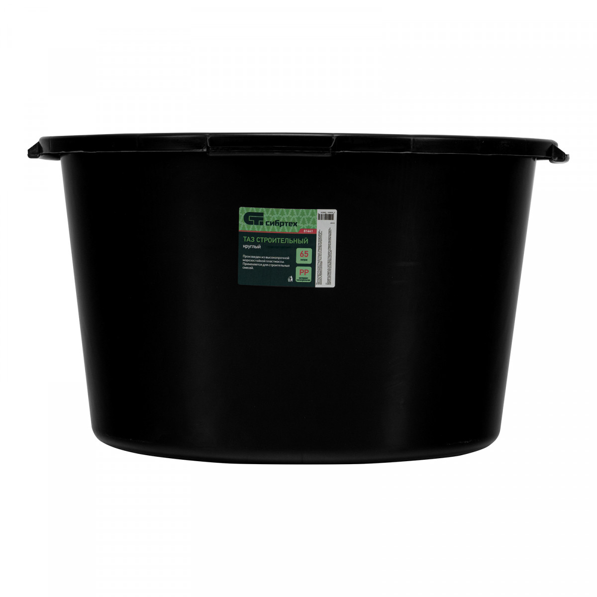Круглый строительный таз Сибртех 81441 объемом 65 л используется для приготовления штукатурных, шпаклевочных, красящих, клеевых растворов при проведении ремонтных и отделочных работ. Пригодится таз и в быту — в нем удобно хранить и перемещать сыпучие материалы.