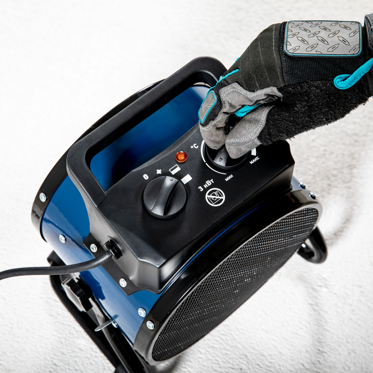 Тепловая пушка Сибртех К3 96404 с керамическим нагревательным элементом работает от сети 230 В и имеет три режима: вентиляция без нагрева, нагрев с мощностью 1500 или 3000 Вт. Предназначена для обогрева или вентиляции нежилых помещений площадью до 30 кв. м, просушки различных поверхностей, например, бетонных стяжек, окрашенных или оштукатуренных стен.,Отличительная черта пушки — технология PTC. Металлокерамические нагревательные элементы обладают функцией саморегуляции электрического сопротивления, что обеспечивает оптимальную температуру нагревательного элемента и пожаро-, взрывобезопасность изделия. При сохранении физической целостности нагревательный элемент не теряет своих свойств на протяжении всего срока службы.