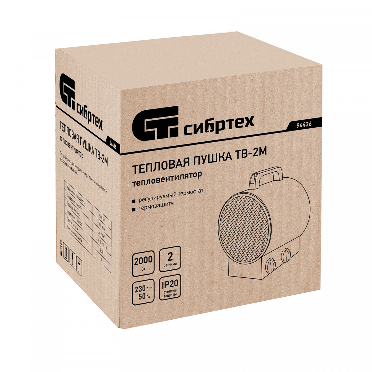 Тепловая пушка ТВ-2М (тепловентилятор) 230 В, 2 режима: вентилятор / 2000 Вт Сибртех