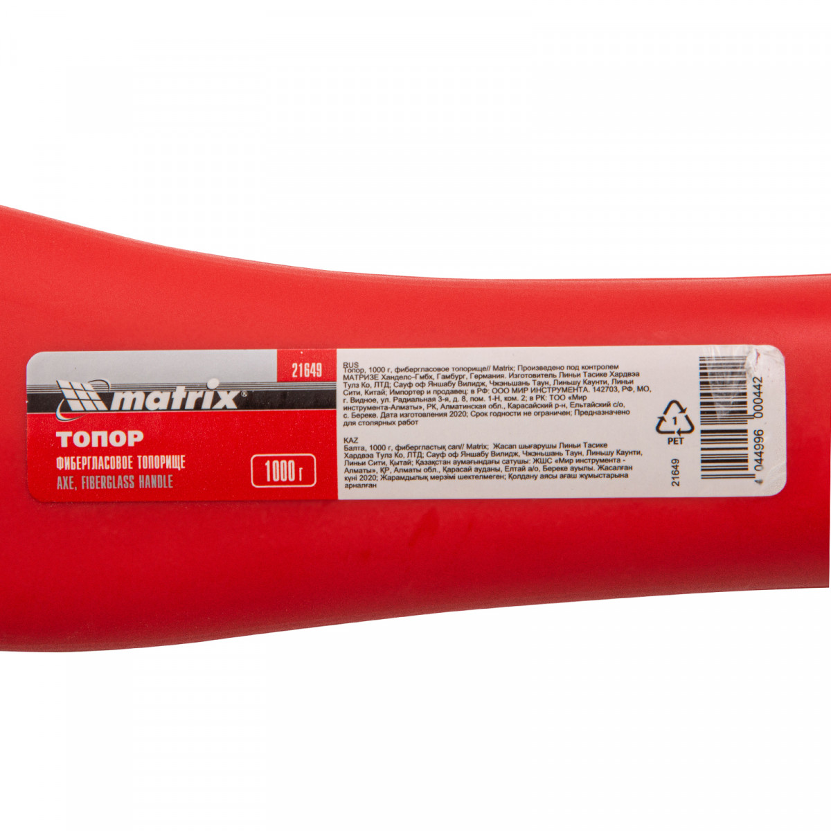 Топор Matrix 21649 с рабочей частью весом 1000 г и фибергласовым топорищем предназначен для рубки, тесания и колки твердой или мягкой древесины. Будет полезен на дачном и сельскохозяйственном участке для заготовки дров, рубки кустов, сучьев, а также выполнения других работ. Топор оптимален для полупрофессионального применения.