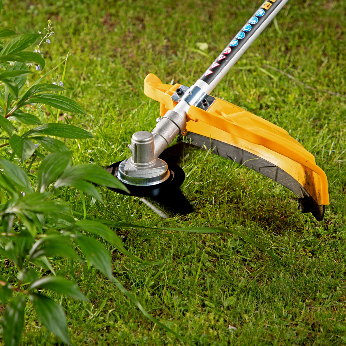 - Удобное управление — благодаря плечевому ремню, регулируемому кольцу крепления и велосипедным рукояткам триммер легко удерживать и направлять.