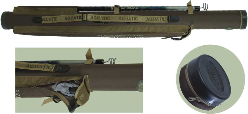 Жесткий тубус для надежной защиты удилищ и спинингов. Торец тубуса закрыт пластиковым колпаком. Тубус данной модели снабжен дополнительными карманами