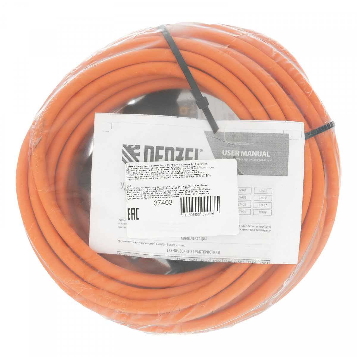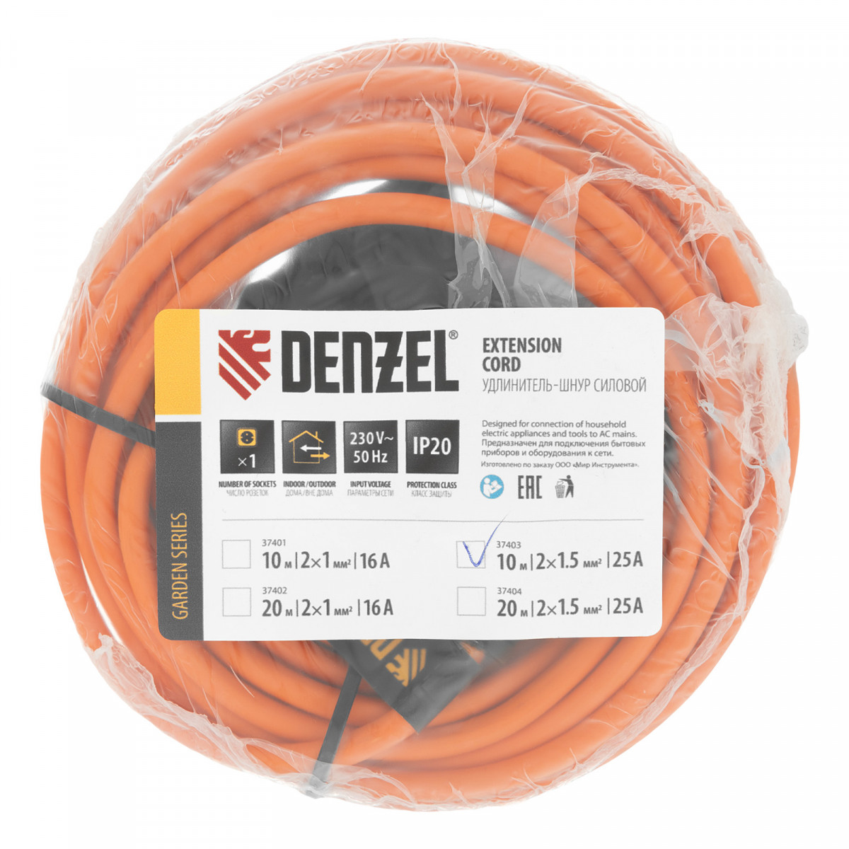 Удлинитель-шнур силовой Garden Series, б/з, ПВС, 10м, 1 розетка, 2 x 1,5 мм, Denzel