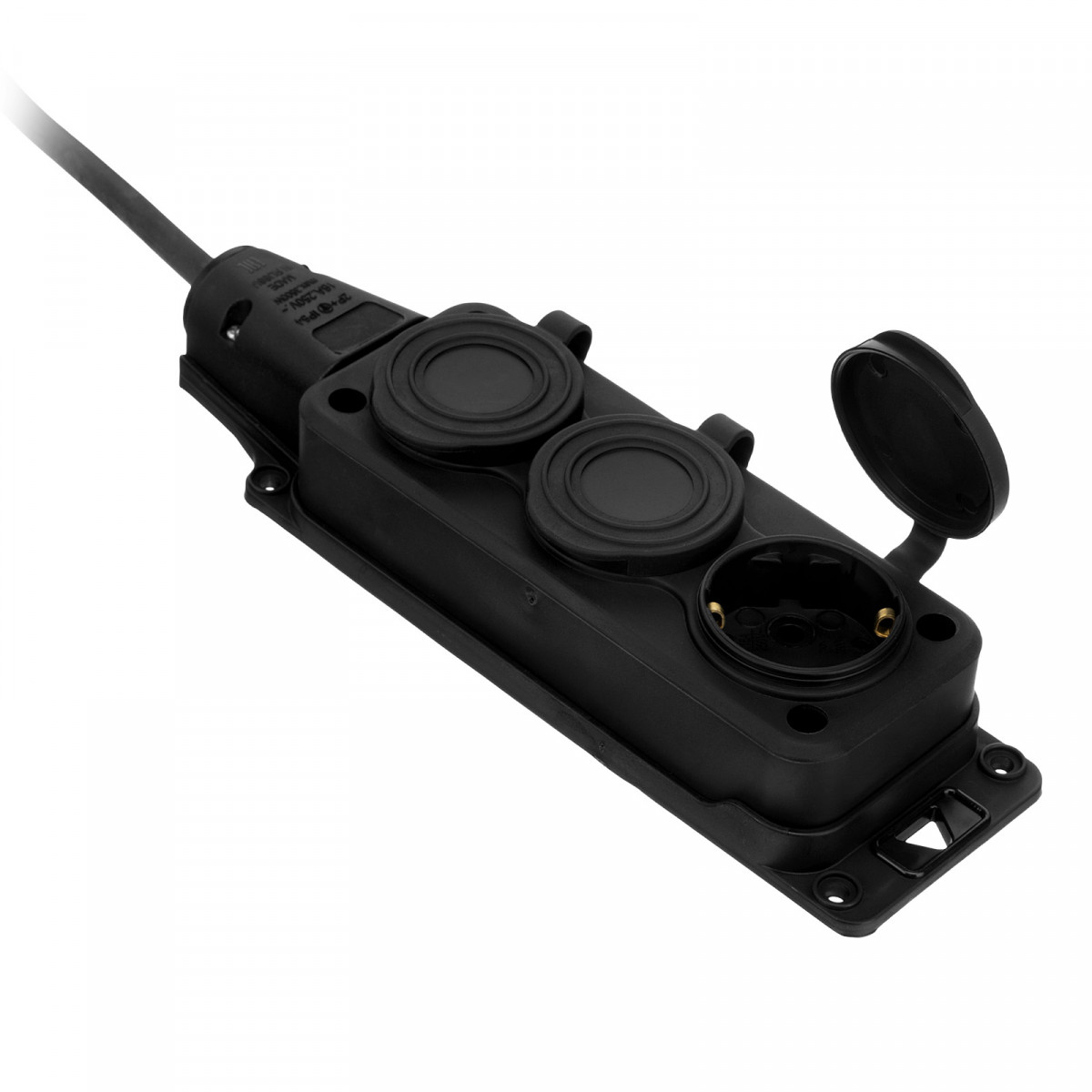 Удлинитель-шнур имеет степень защиты IP 44, что позволяет использовать его даже во время выпадения осадков.