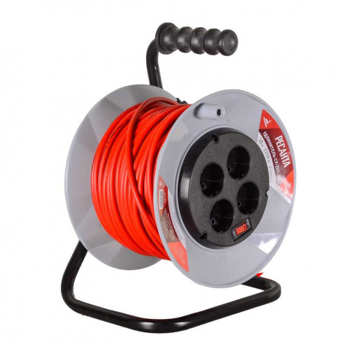 Силовой удлинитель пригодится на стройке, в частном доме и на дачном участке. Использовать его удобно за счет катушки, а переносить – благодаря эргономичной ручке и небольшому весу. Удлинитель поможет в использовании электрического триммера, газонокосилки. С его помощью легко подключить различного рода строительный инструмент. Конструкция изделия максимально проста. Упрощенно, удлинитель состоит из вилки, катушки, провода и усиленных розеток. Отличительные особенности данной модели: - Устройство оснащено кабелем ПВС 2х1 длиной в 30 м. - На пластиковой катушке расположены 4 розетки, что позволяет подключать сразу нескольких пользователей. - Пропускная мощность составляет от 1,1 кВт (в смотанном виде) до 2,2 кВт (в размотанном). Модель отлично подойдет для подключения мощного оборудования. Однако стоит помнить о том, что кабель в этом случае необходимо расправить. - На катушке расположен выключатель с тепловым реле, которое обеспечивает защиту от перегрузок.
