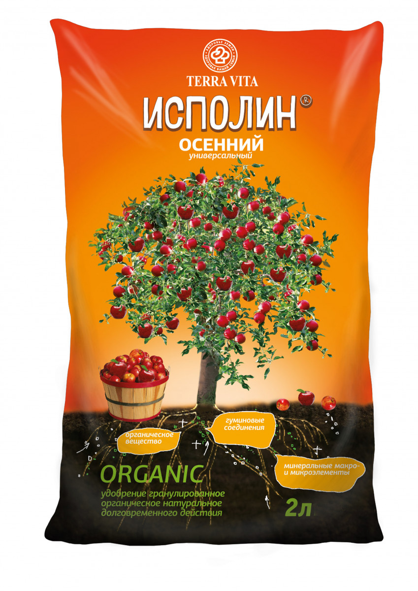 Исполин Осенний – органо-минеральное удобрение, оформленное в виде гранул. Производимое из смеси биогумуса, торфа, макро- и микроудобрений. Содержит минимум азота, максимум фосфора и калия.