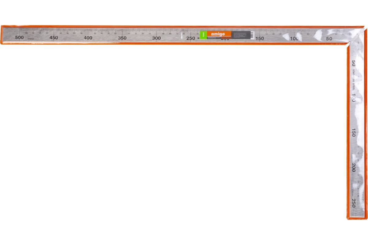 Измерительный угольник AMIGO 500x250 мм 75050 выполнен из нержавеющей стали.