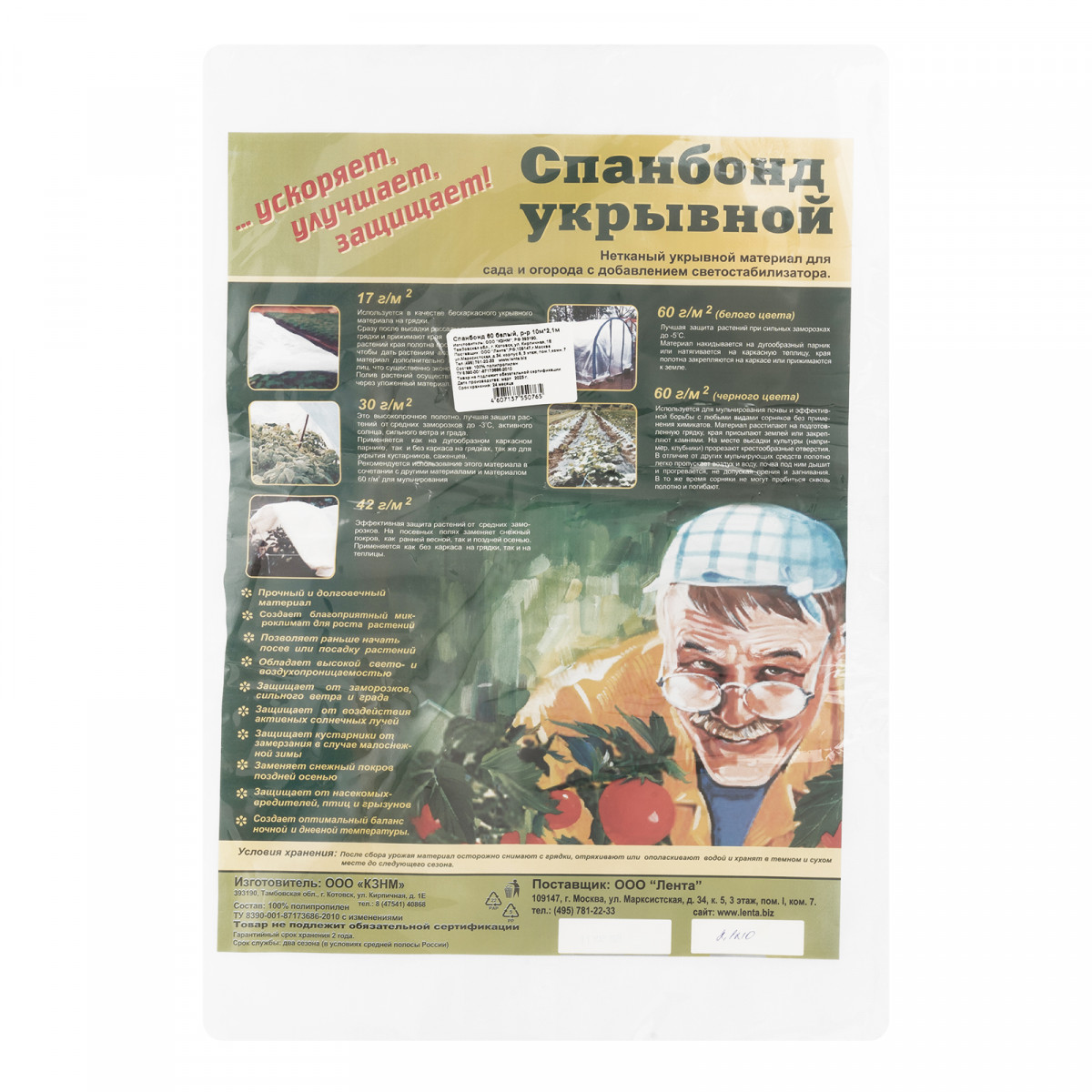 - Безопасность для окружающей среды — укрывной материал изготовлен из волокон экологически чистого полипропилена.