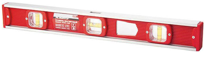 Магнитный уровень 460 мм, 3 глазка MATRIX 33701 представляет собой удобный инструмент с магнитом. Это упрощает работу с металлическими конструкциями любой сложности. Высокая точность и прочность акриловых колб значительно упрощает процесс измерений.