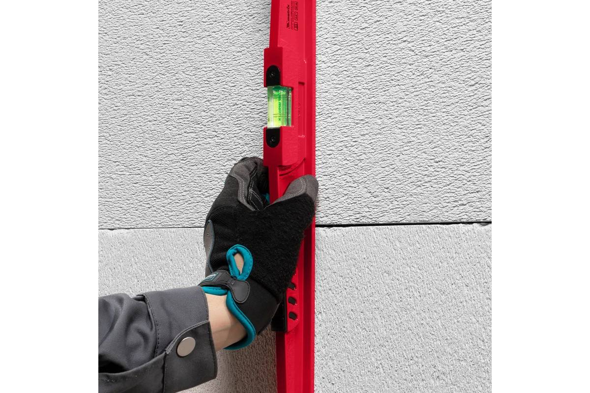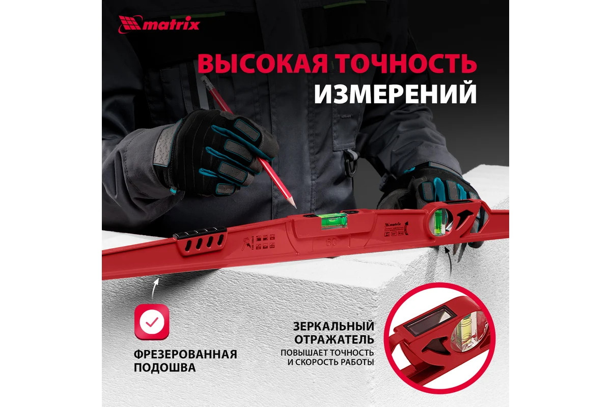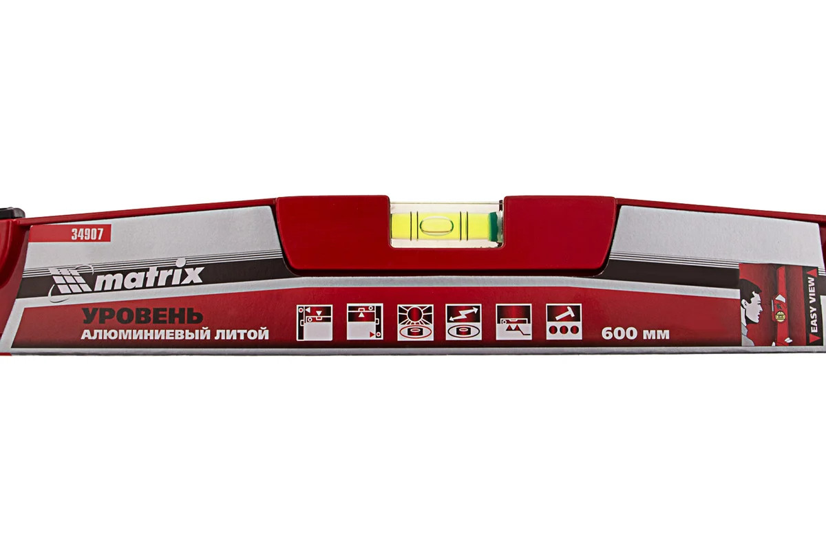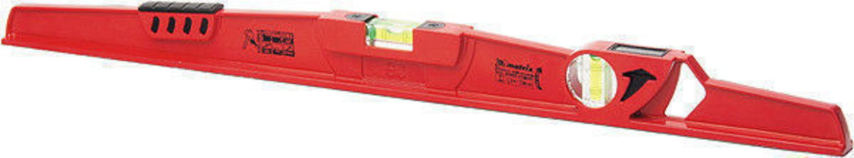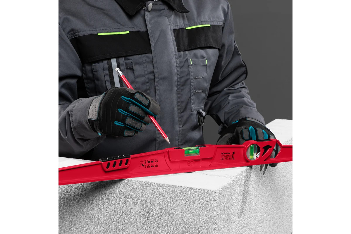Ударопрочный цельнометаллический алюминиевый уровень длиной 600 мм подходит для работ по выравниванию плитки и кирпичной кладки. Уровень имеет цельнометаллический профиль, изготовленный методом литья, устойчив к скручиванию и имеет прорезиненную ударную площадку для дополнительного выравнивания материала. Уровень также оснащен дополнительным глазком с зеркальным отражателем, что значительно увеличивает скорость проводимых измерений и помогает исключить ошибки бокового зрения. Все глазки имеют дополнительные насечки для увеличения точности замеров (по четыре на каждом глазке). Фрезерованная базовая поверхность обеспечивает лучшее сцепление с выравниваемой поверхностью и уменьшает эффект скольжения. Фронтальный глазок имеет возможность регулировки, что значительно увеличивает срок службы данного изделия. Дополнительно на уровне нанесены схематичные пиктограммы, что позволяет производить самостоятельный выбор изделия.