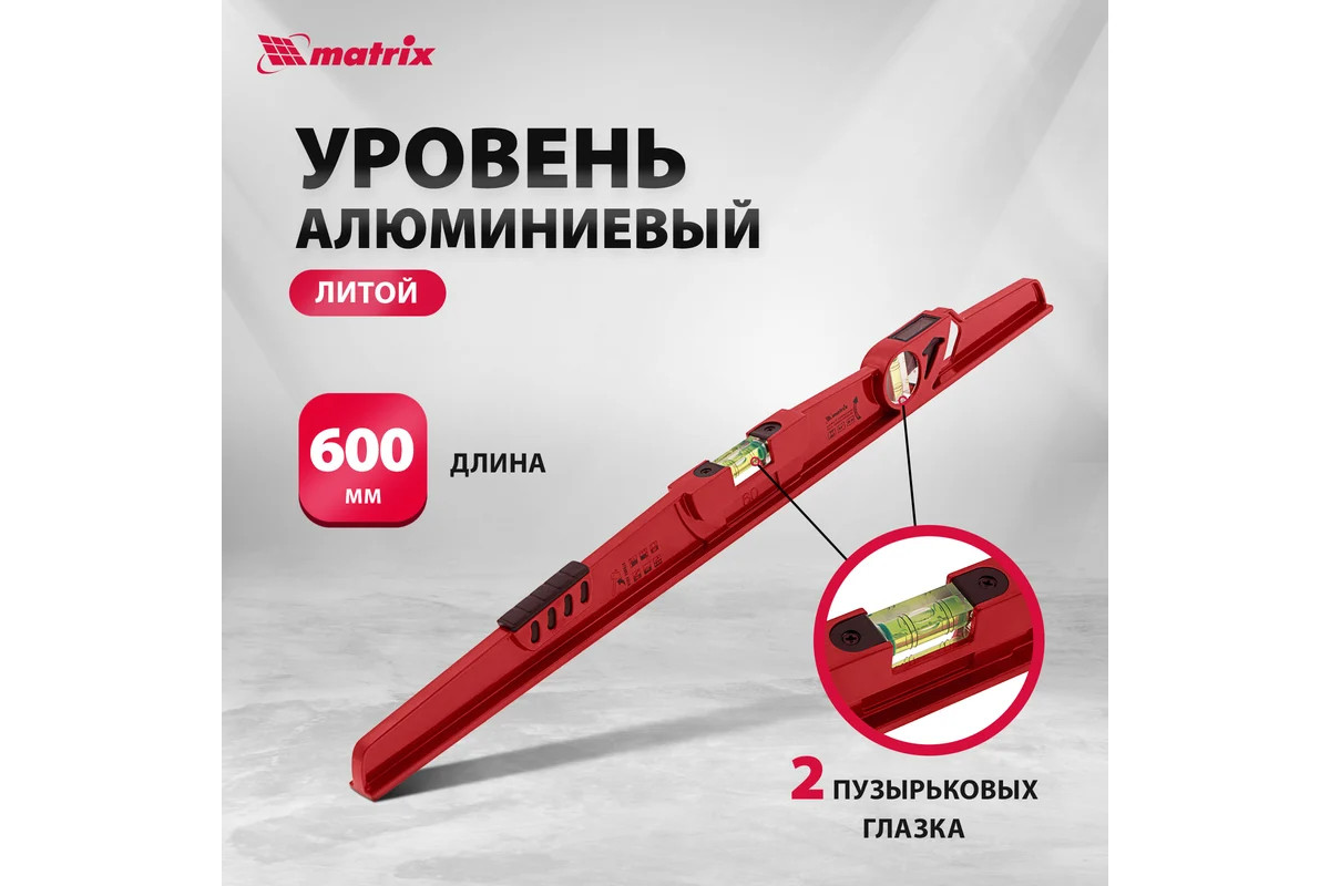 Уровень 600 мм 2 глазка (1 фронтальный) литой, ударная площадка МАТRIХ