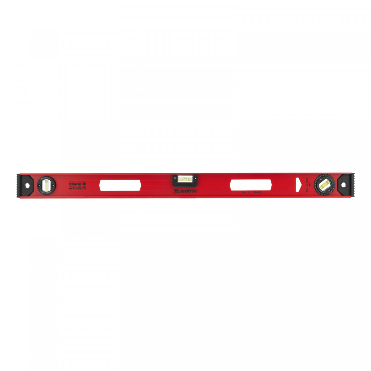 Уровень алюминиевый усиленный Matrix «Рельс» 34008 длиной 800 мм снабжен 3 глазками для проверки отклонений относительно горизонтальной и вертикальной плоскостей. Поворотный глазок уровня позволяет выстроить произвольный угол. Инструмент пригодится строителю, отделочнику, бетонщику и другим специалистам.