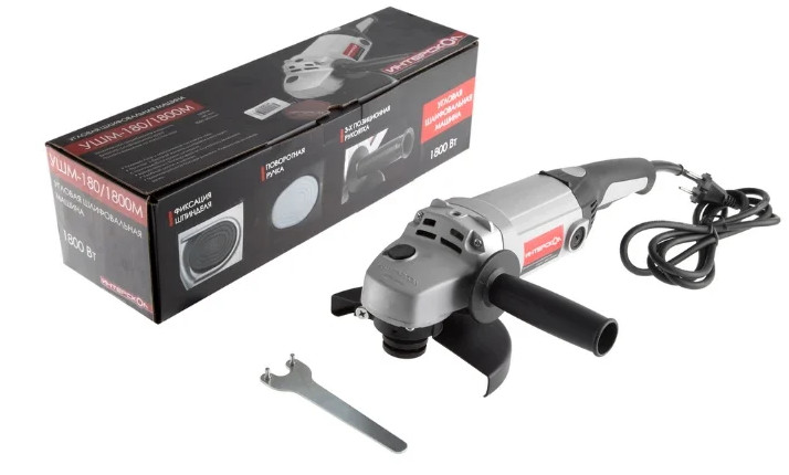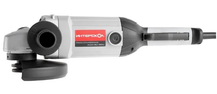 Угловая шлифмашина Интерскол УШМ 180/1800 М применяется для резки и шлифовки бетона, камня и металла дисками диаметром не больше 180 мм. Инструмент оснащен поворотной основной рукояткой и трехпозиционной боковой рукояткой. Редуктор надежно защищен от пыли