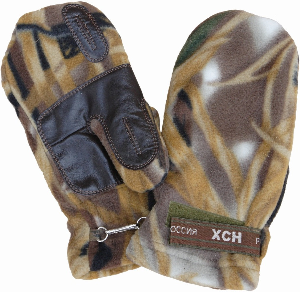 Варежки охотника флис, кож. накл. (Камыш) ХСН 735-3