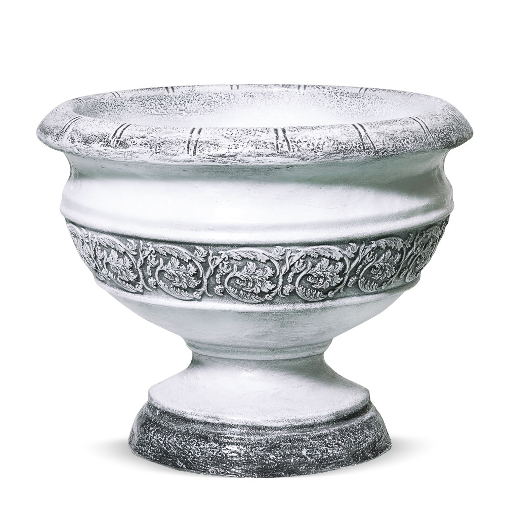Выполнен из стеклопластика. Имеет декор в виде лепестков. Покраска - под бетон.