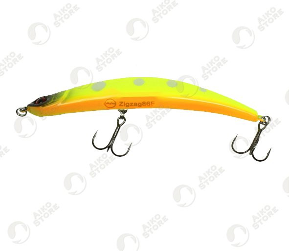 Воблер для рывковой проводки и анимации. Система огрузки расположена таким образом, что ZigZag лежит всегда на боку, плюс его стабилизирует нижний тройник. Все это создано для имитации раненой, почти умирающей рыбки, которая лежит у самой поверхности.